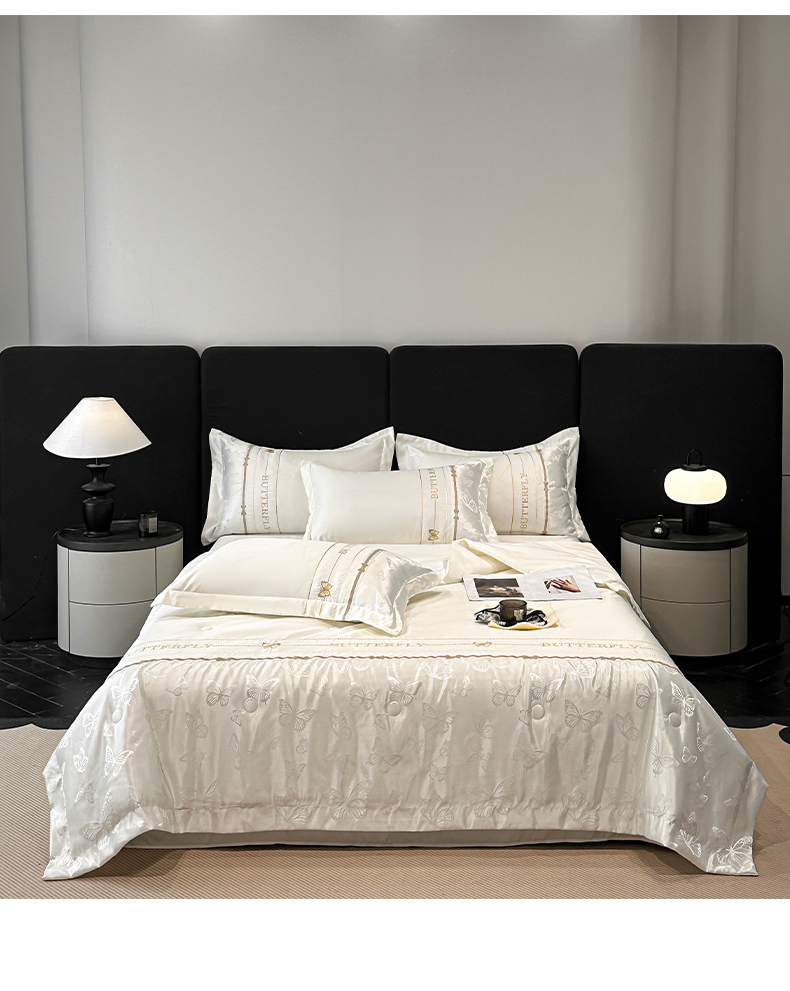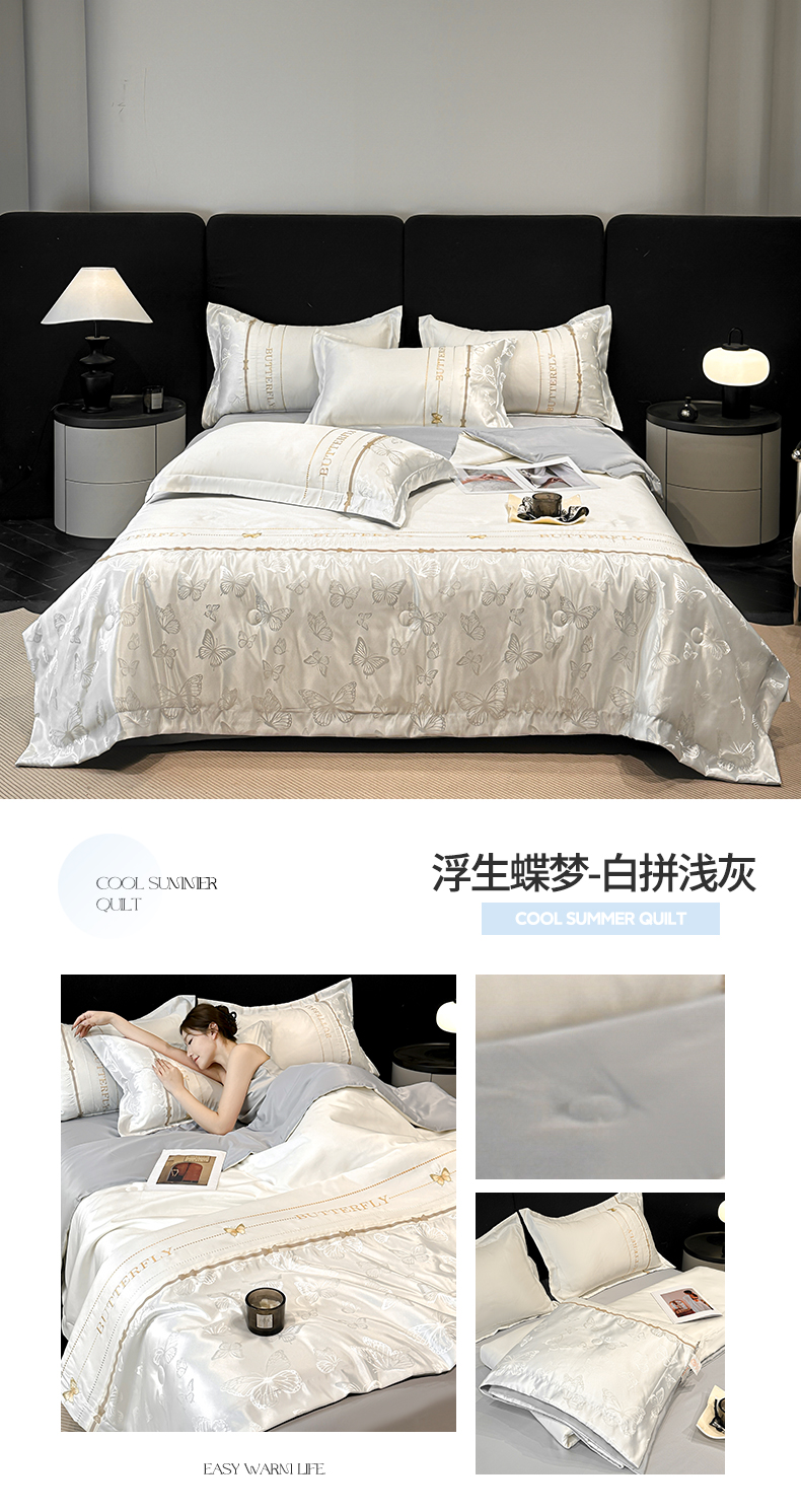 (总)宇航家纺 2026新款厚织提花绣花水洗真丝夏被四件套单夏被,蝶舞奶白,蝶舞白拼深灰,蝶舞粉玉,蝶舞天蓝,蝶舞银灰,香奈白拼深灰,香奈奶白
