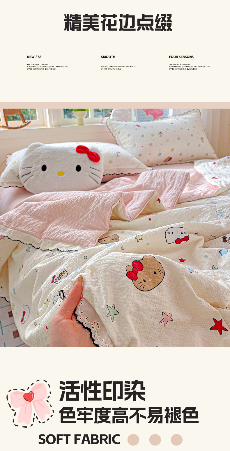 (总)禾沐 2026新款云感泡芙纱全棉蕾丝花边款夏被四件套,波点,花镜人偶,格格心,星芒凯蒂,花丛萌免,莓系花伐,片刻小狗,田园免,只闻花香,格纹熊,花软雾,猫咪集,木马小花团,暖橘枝,蔷薇花,若梦,星星人,胭脂,芋泥花束,悦悦小兔,组合图