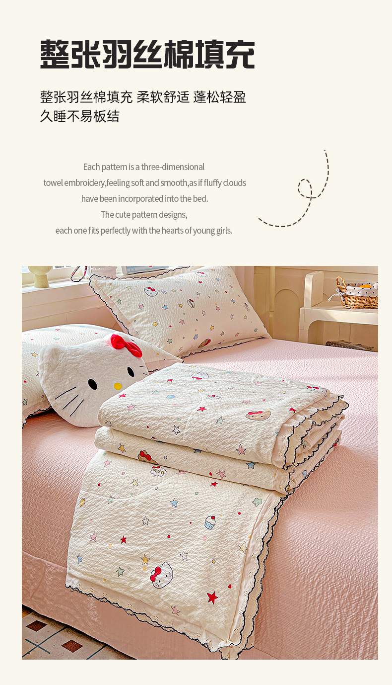 禾沐 2026新款云感泡芙棉床盖夏被四件套AA款(夏被款) 曲奇猫,曲奇猫