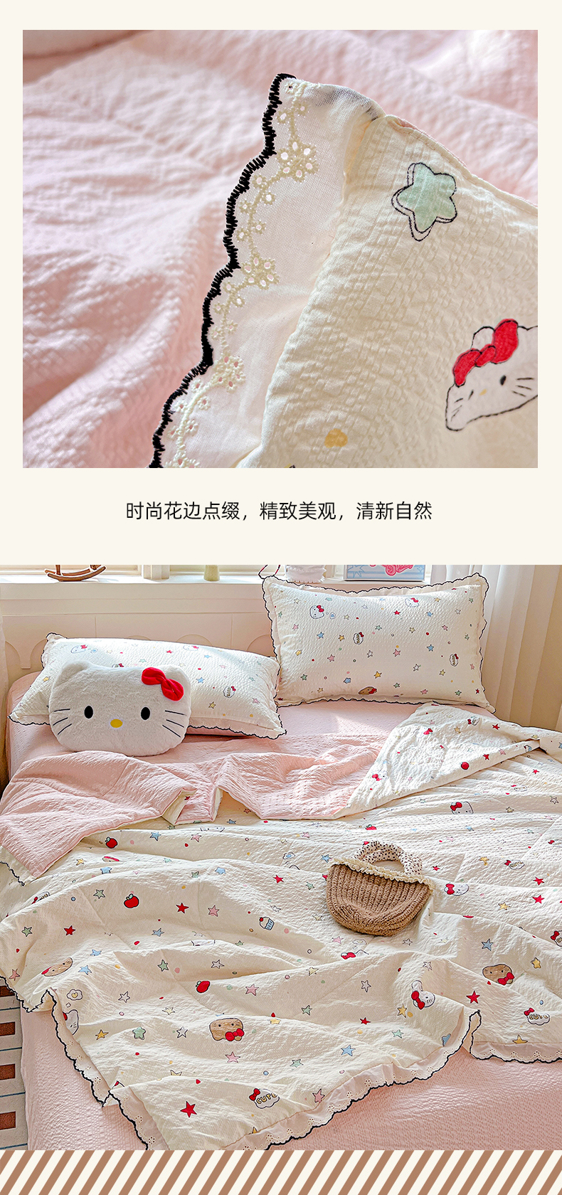 梵希雅 2026新款泡芙纱床盖夏被四件套 小猫拉车,小猫拉车