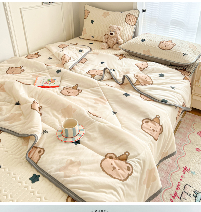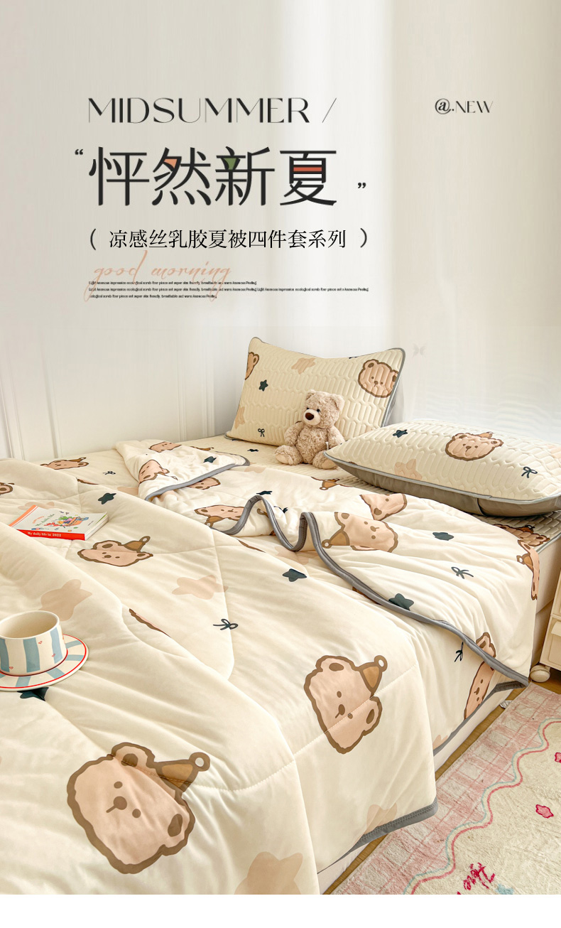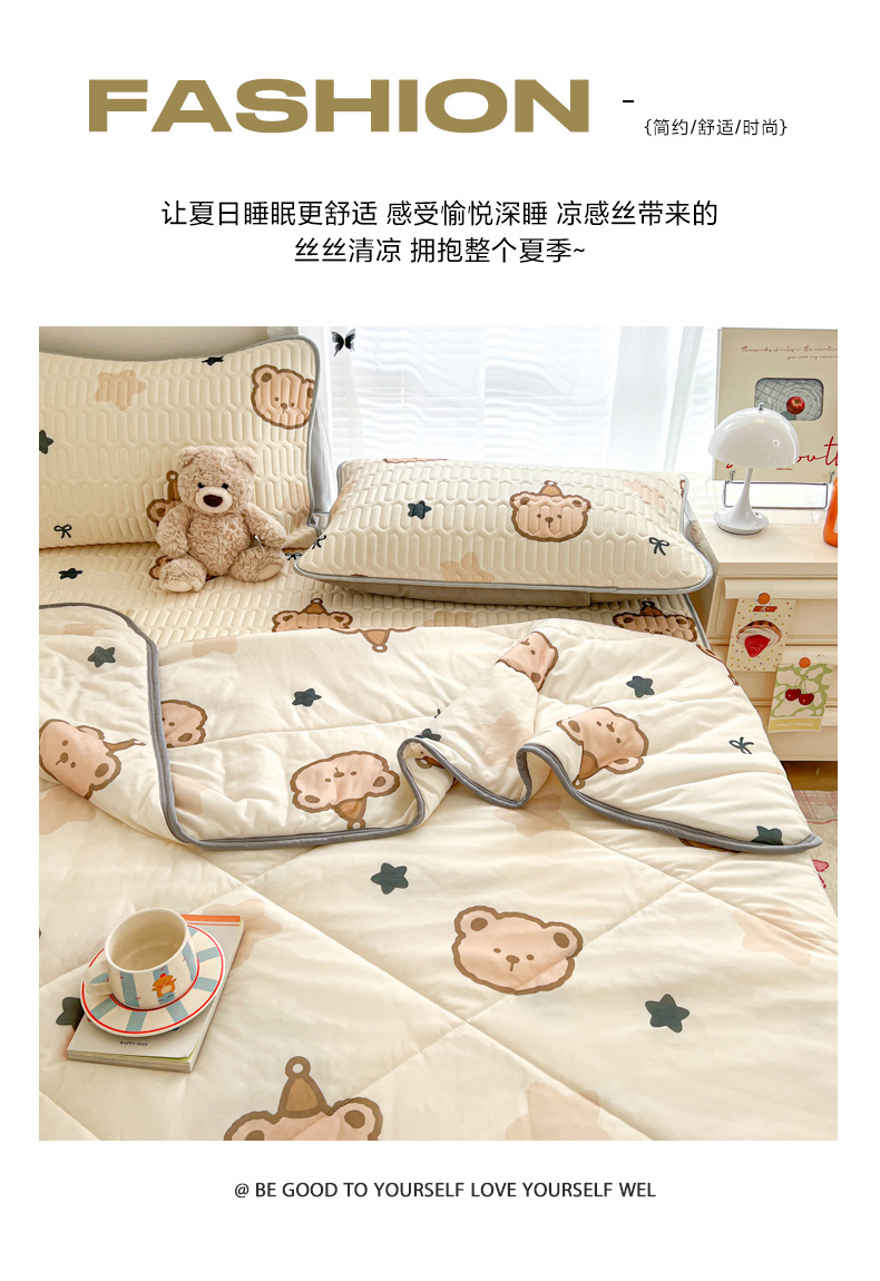 当前位置: 91家纺网 > 商品网购 > 床品套件 > 四件套 > 夏被四件套 > 柒月家居 2026新款凉感丝小清新乳胶凉席夏被四件套系列 星梦小熊