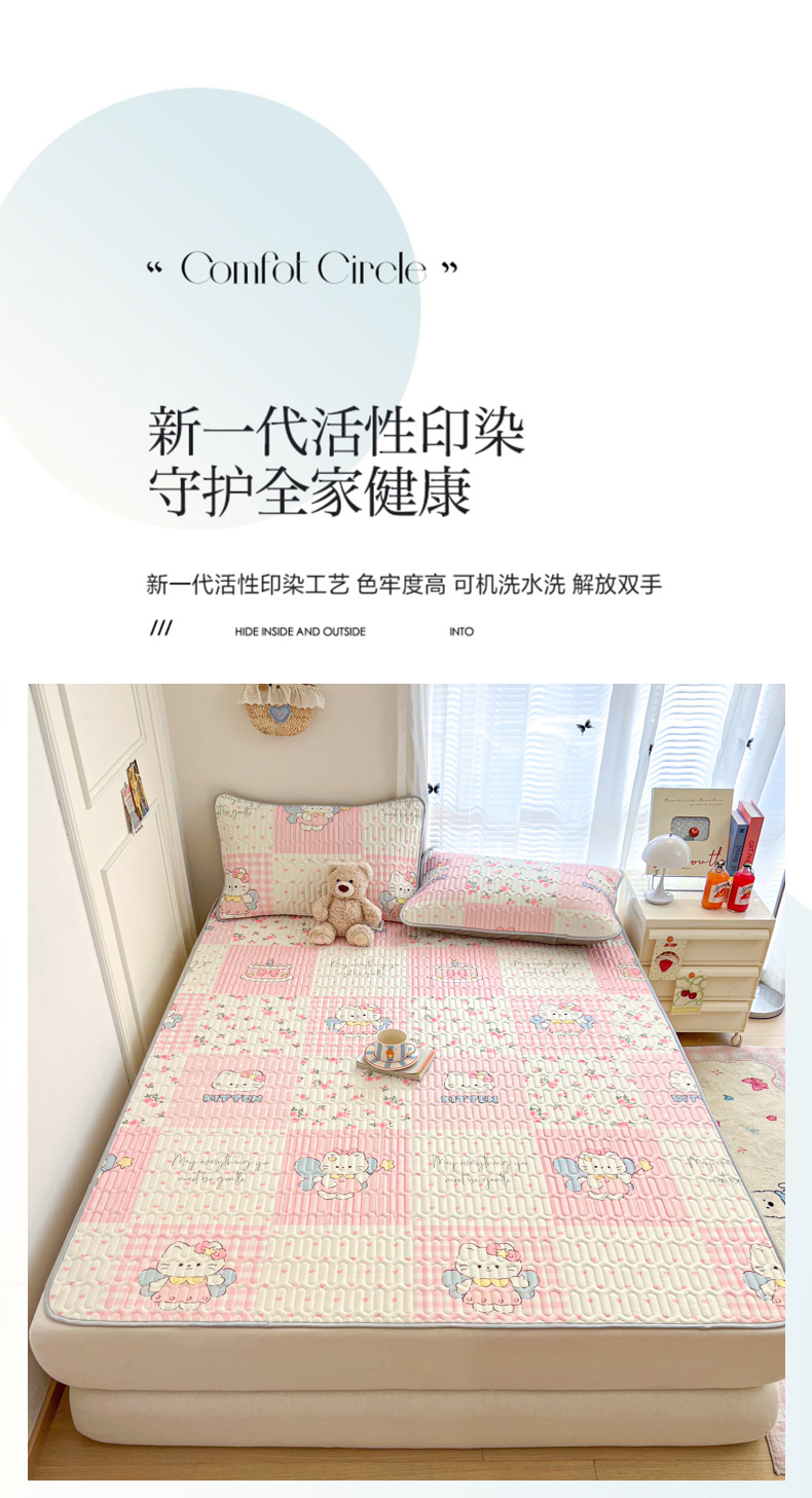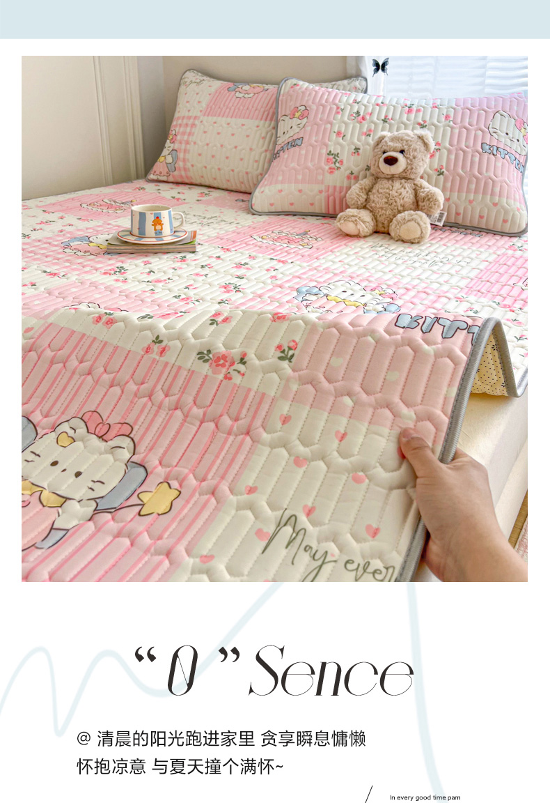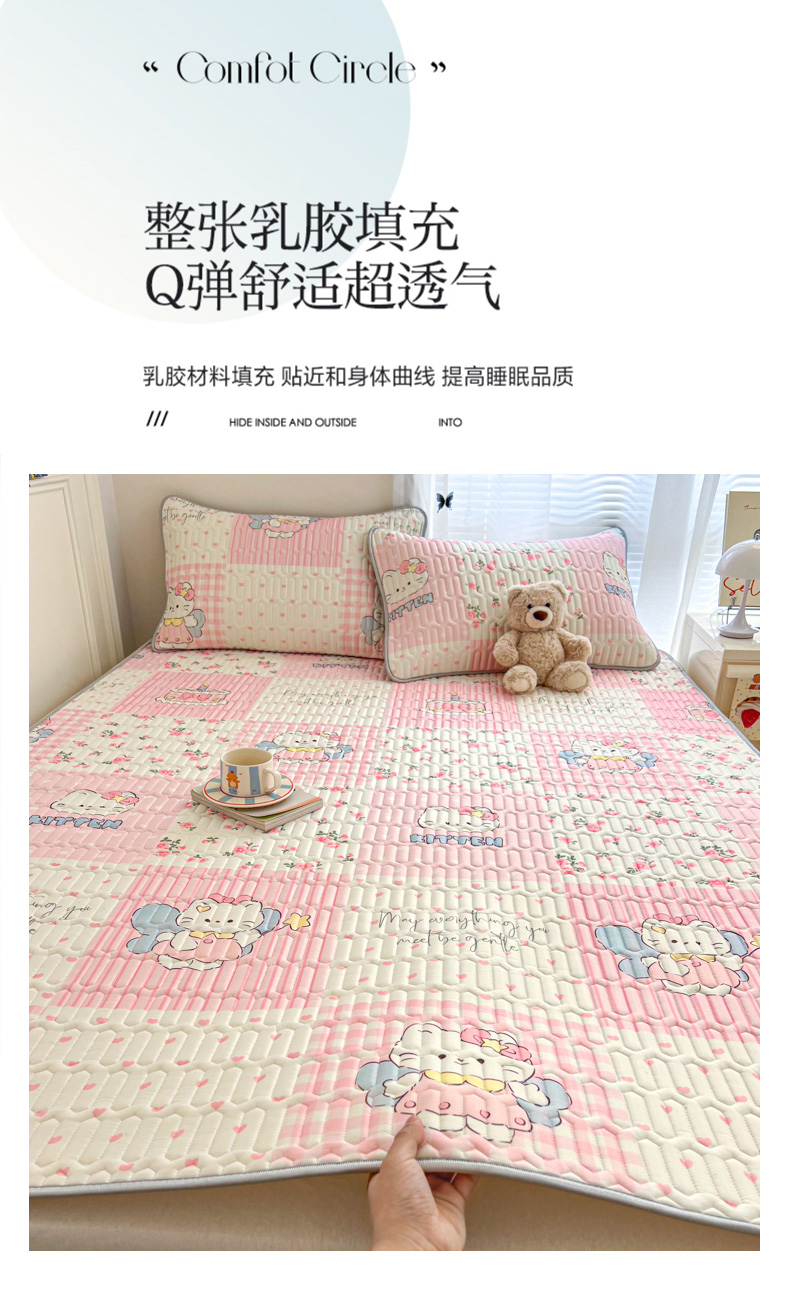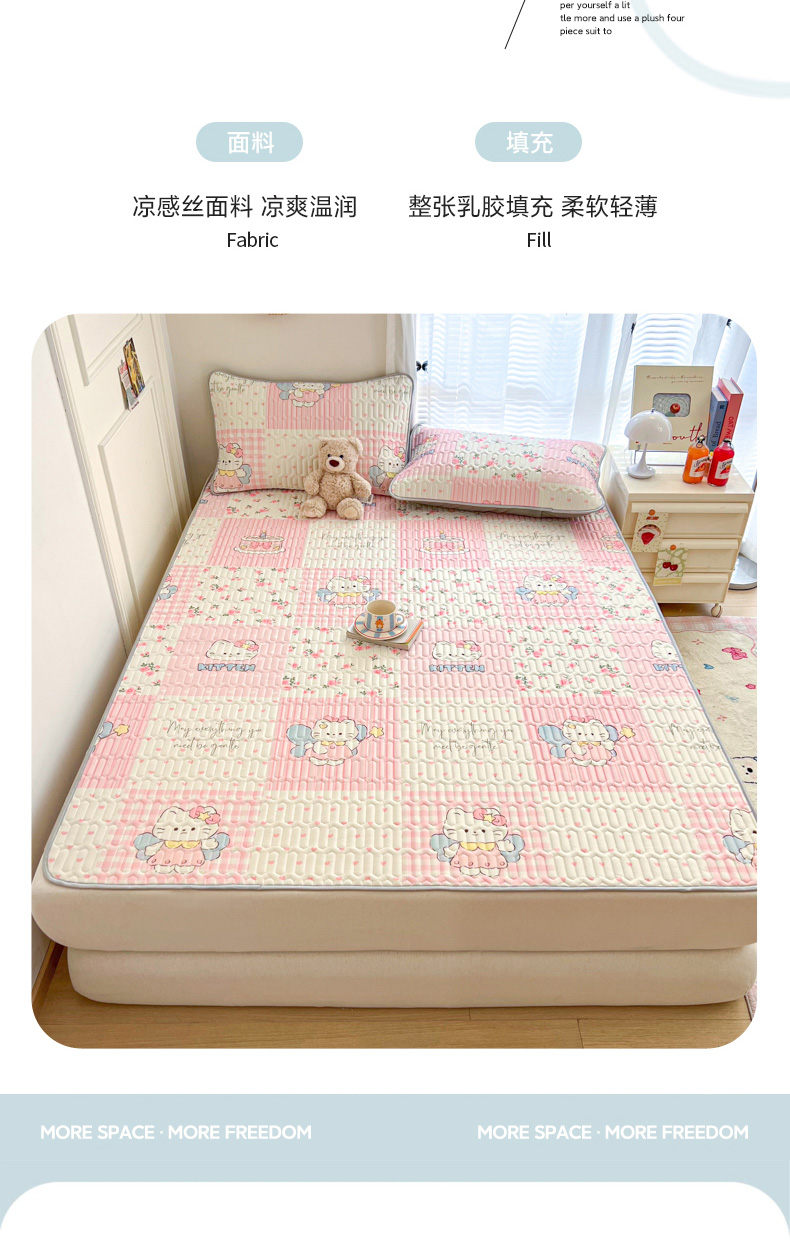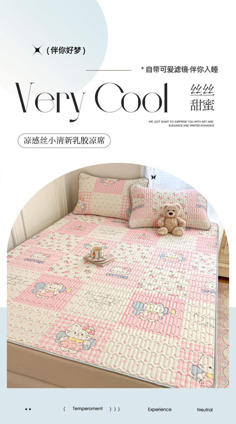 商品名称:柒月家居 2026新款凉感丝小清新乳胶凉席 粉格凯蒂