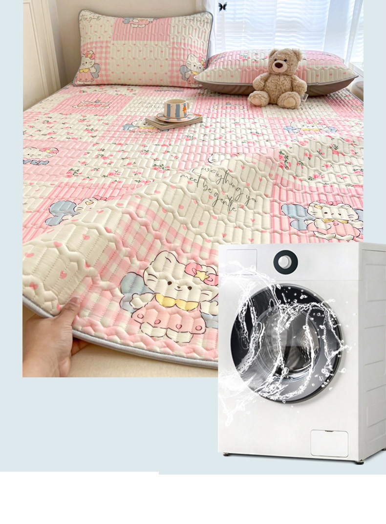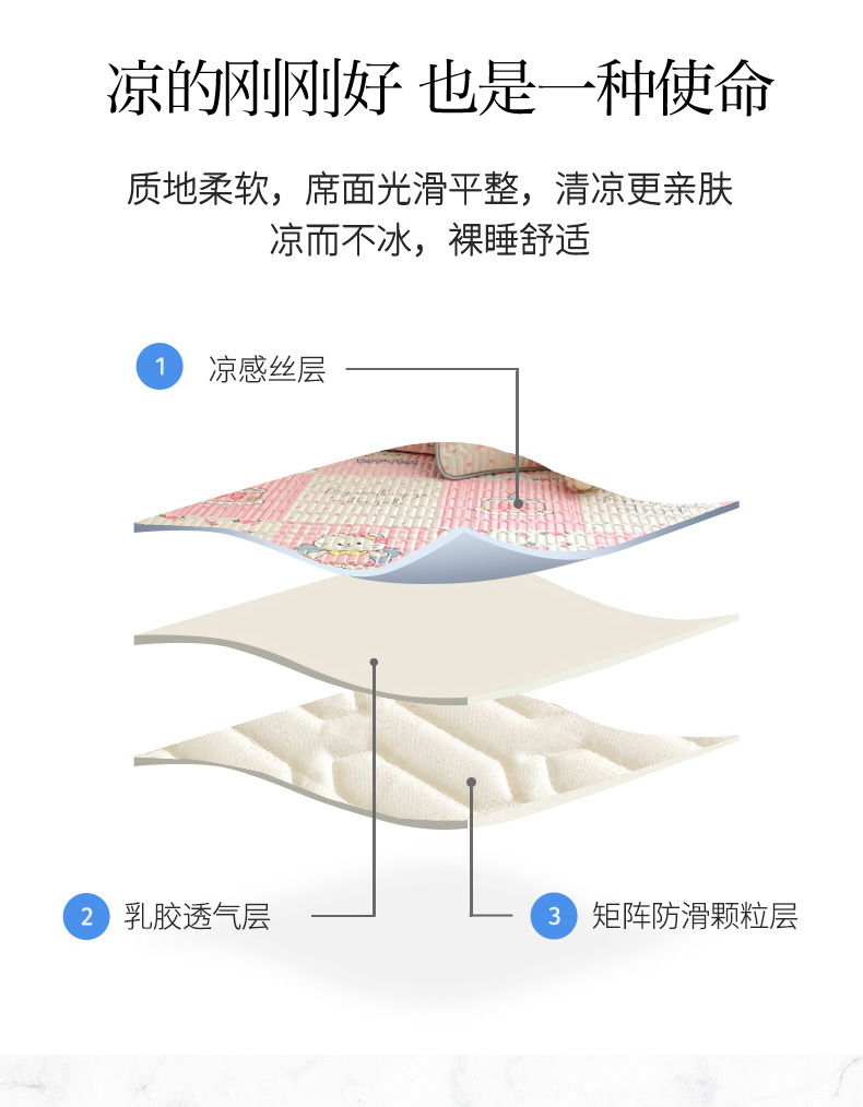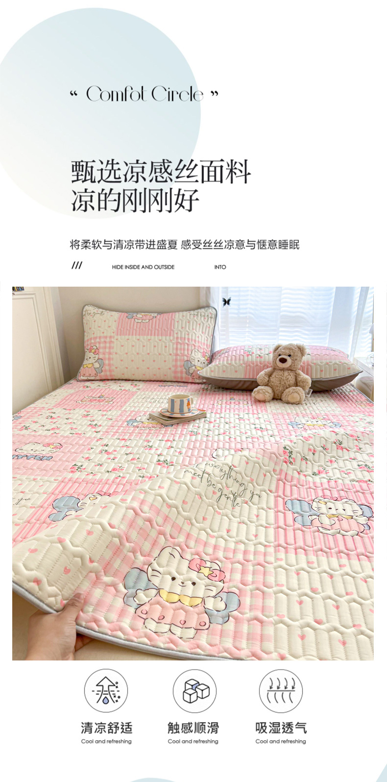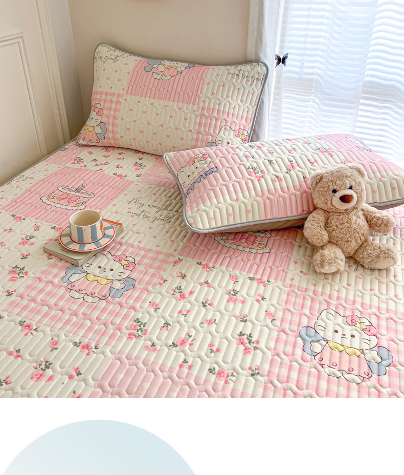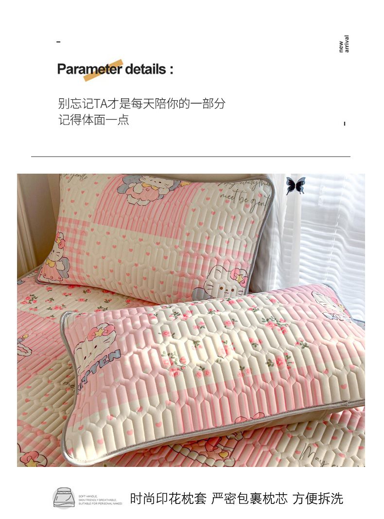 商品名称:柒月家居 2026新款凉感丝小清新乳胶凉席 粉格凯蒂