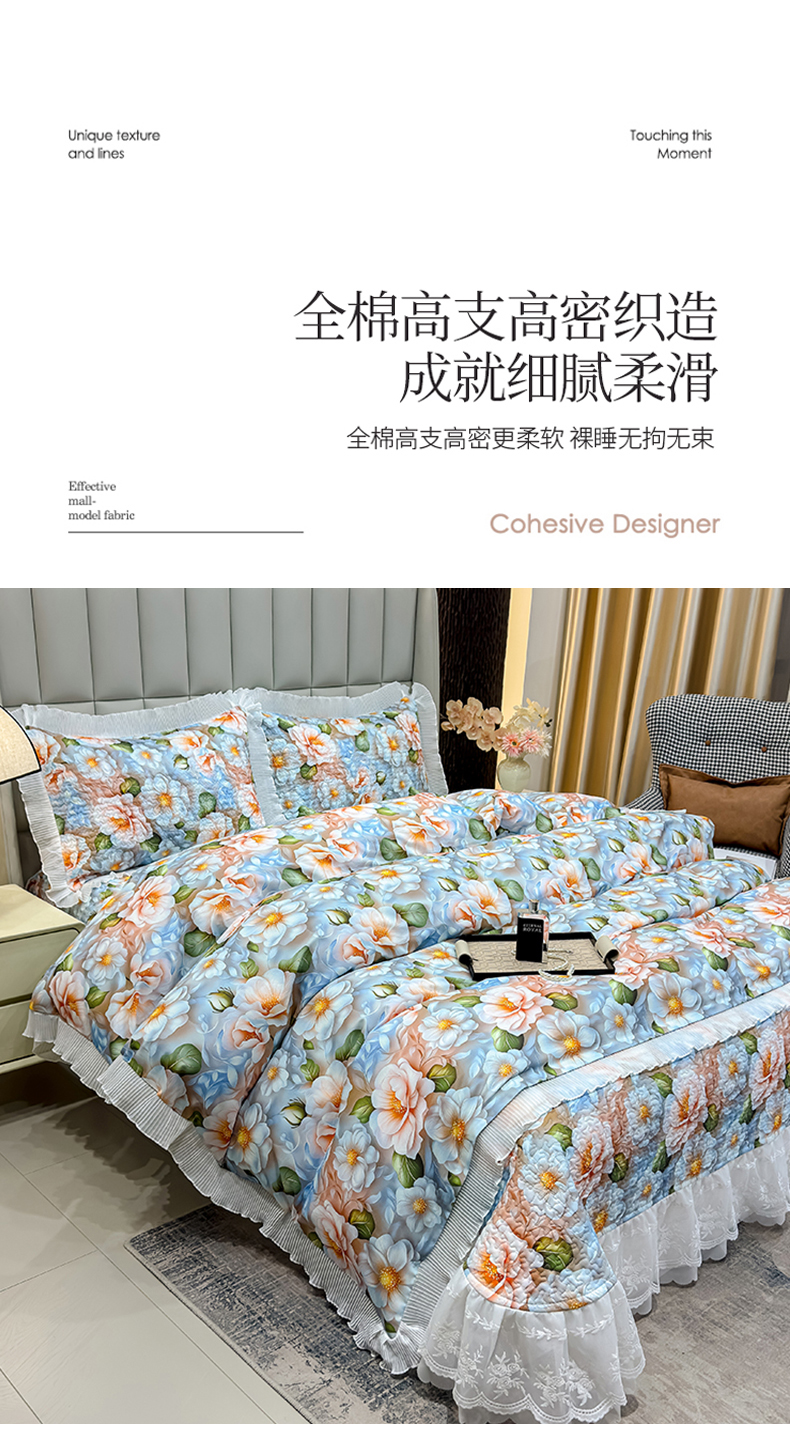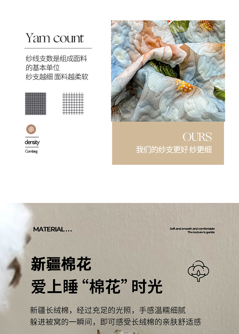 (总)冬然家纺 2025新款纯棉数码印花工艺款单床盖,淡雅清香,国色天香,花海之恋,花影,梦幻花镜,墨雅清风,田园花梦,玉兰花,珍爱花语