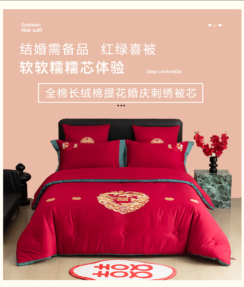 商品名称:甜咪咪婚庆 2026新款婚庆结婚全棉50双股100支长绒棉提花喜被被芯四季被 龙凤团圆