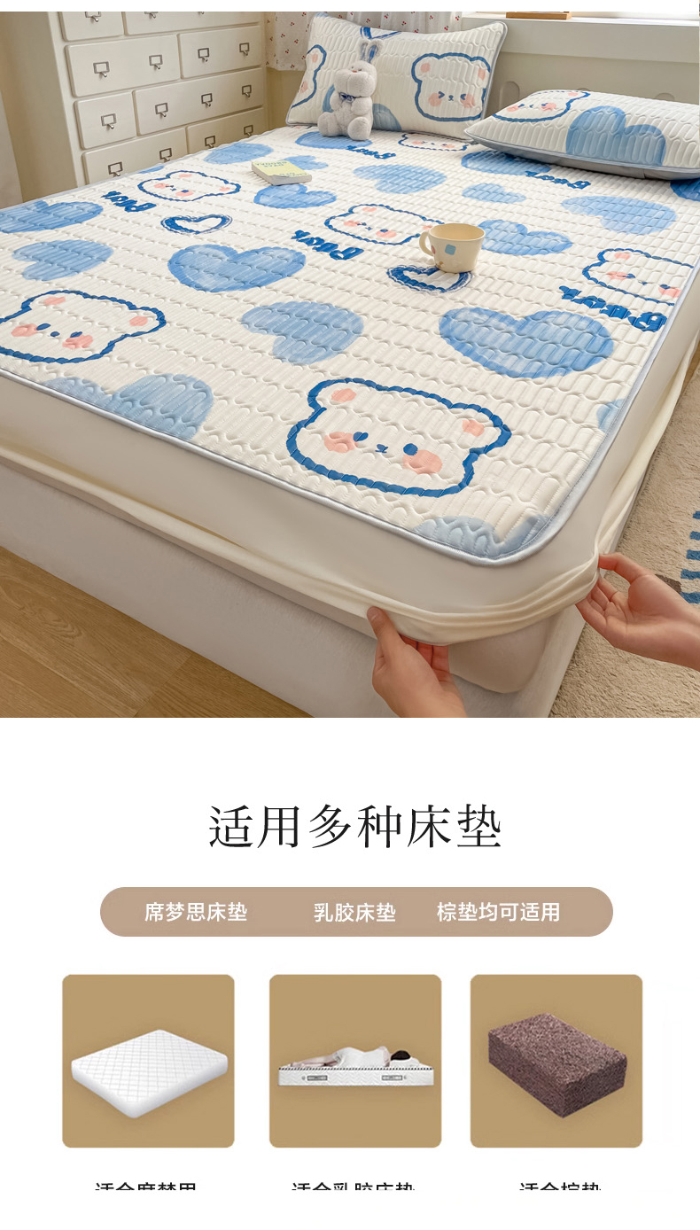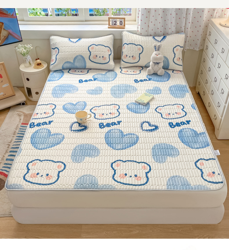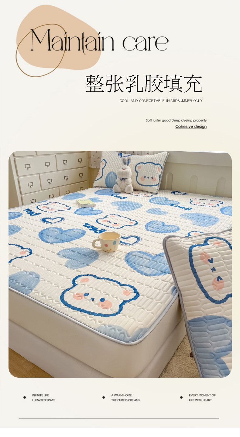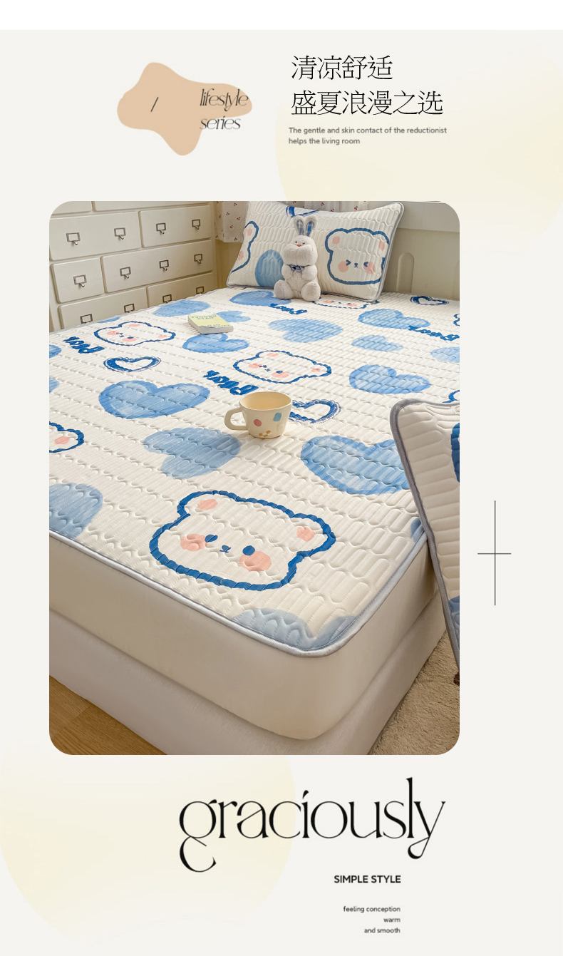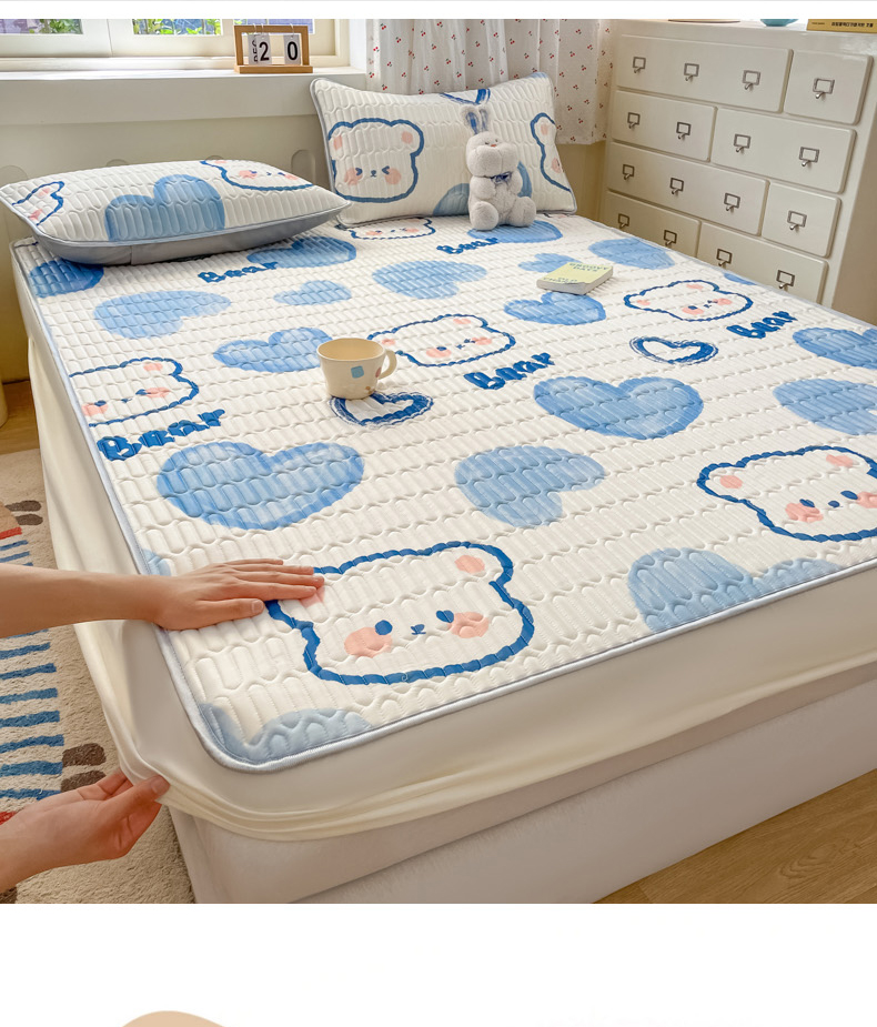 • 91家纺网 家纺一手货源 找家纺 柒月家居 2026新款小清新床笠款乳胶凉席床笠 床笠-爱心小熊
