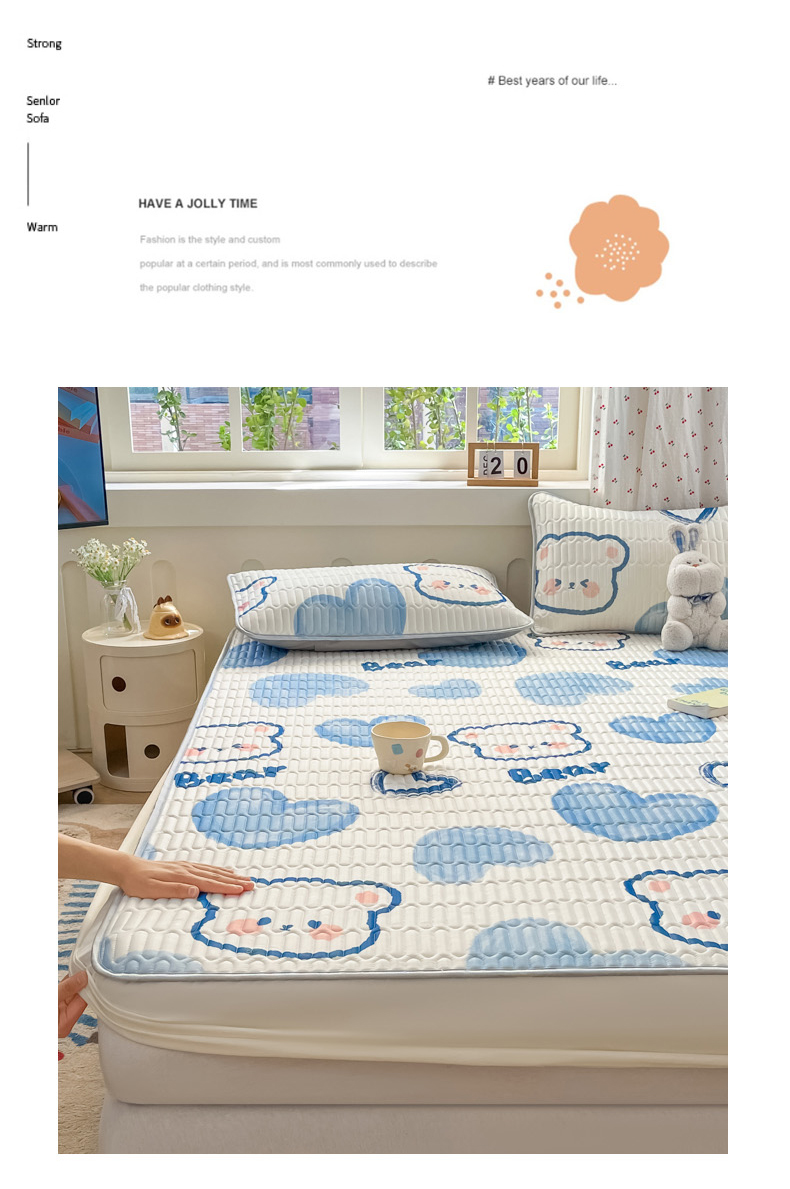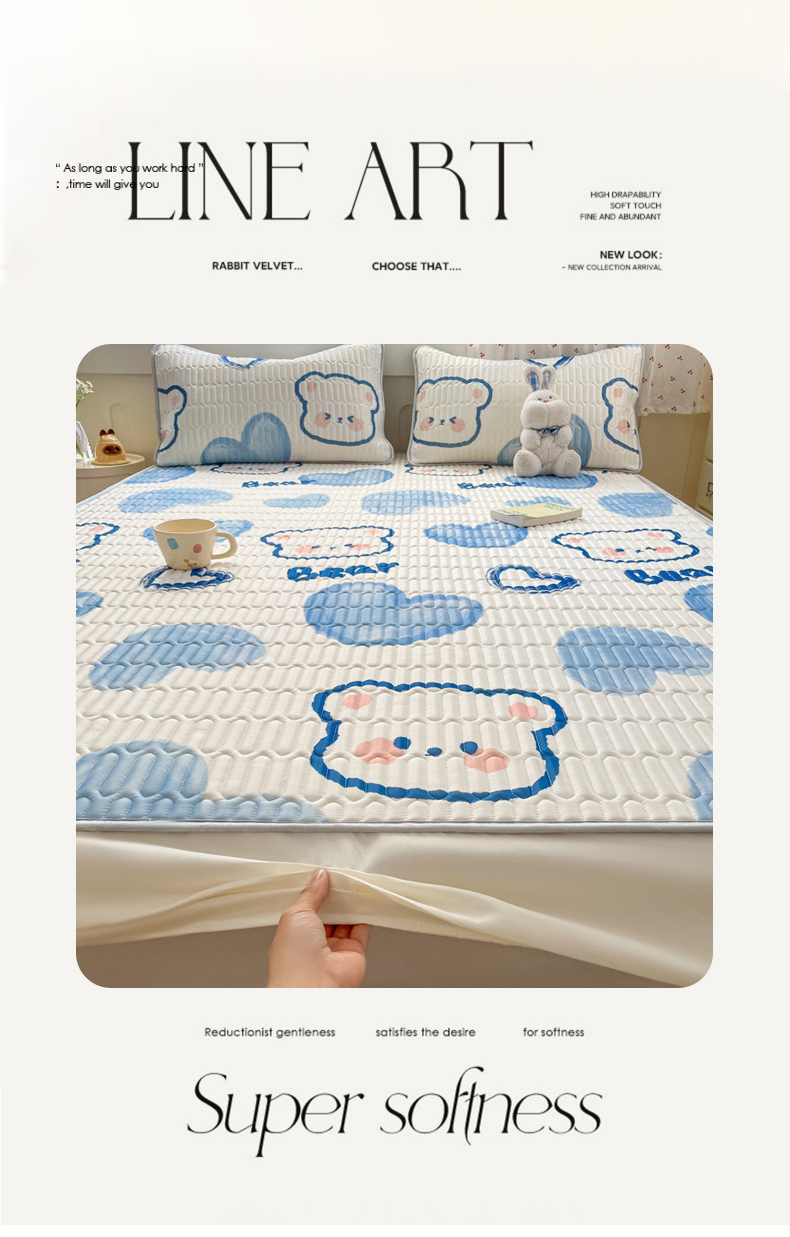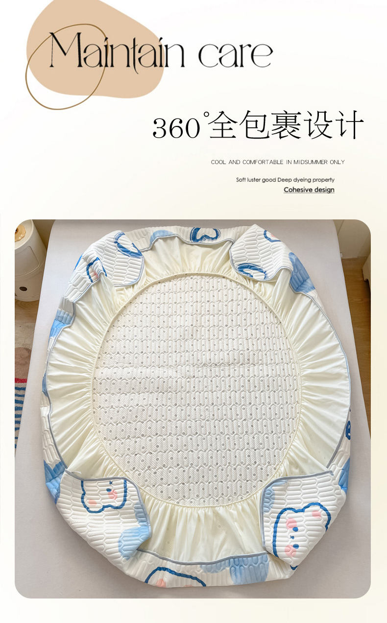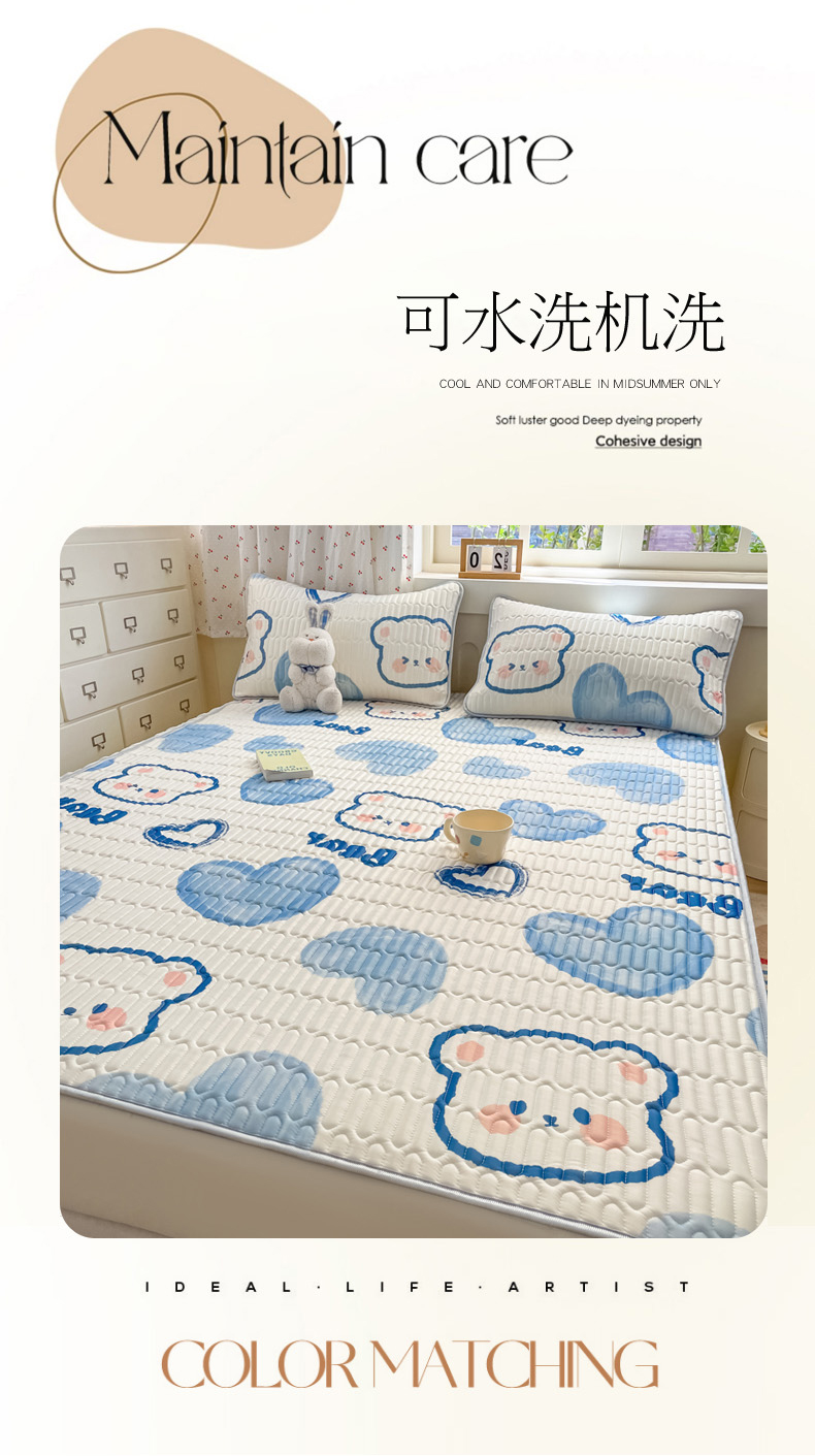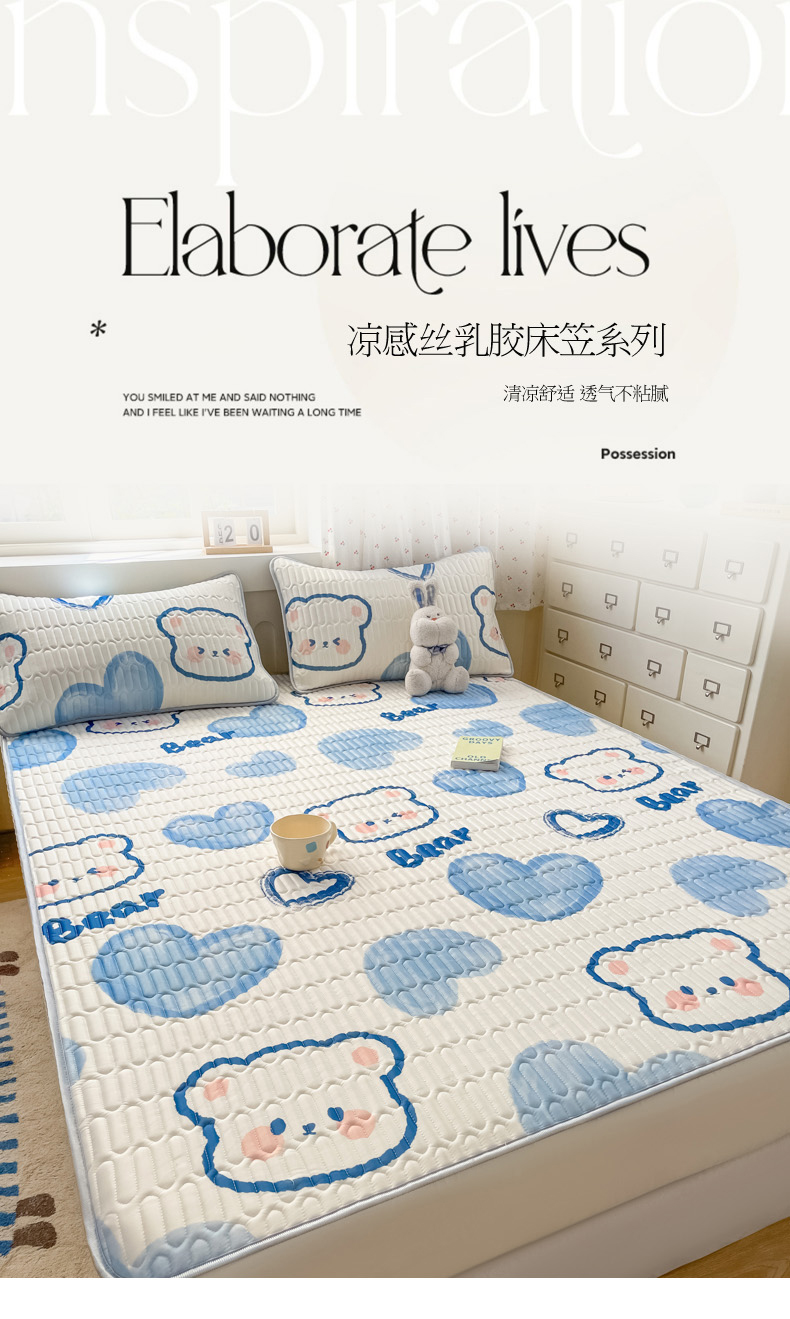 • 91家纺网 家纺一手货源 找家纺 柒月家居 2026新款小清新床笠款乳胶凉席床笠 床笠-爱心小熊