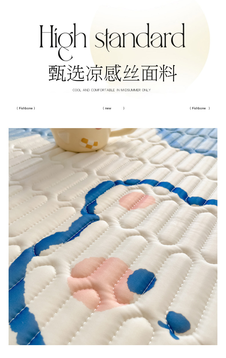 • 91家纺网 家纺一手货源 找家纺 (总)柒月家居 2026新款凉感丝小清新乳胶凉席,蓝格甜猫,爱心小熊,豹纹精灵,粉格凯蒂,格调,花季,蓝块汪仔,奶盖猫咪,碎花派对,桃桃奶猫,星梦小熊,星星月亮,字母小熊