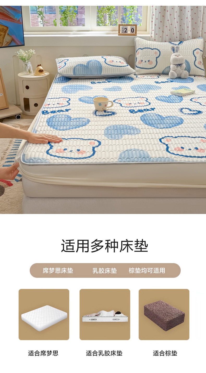 当前位置: 91家纺网 > 商品网购 > 床品套件 > 四件套 > 其它四件套 > 柒月家居 2026新款小清新床笠款乳胶凉席床笠夏被四件套 床笠-爱心小熊