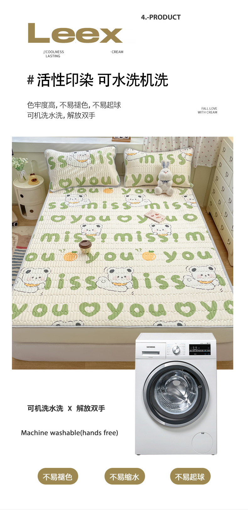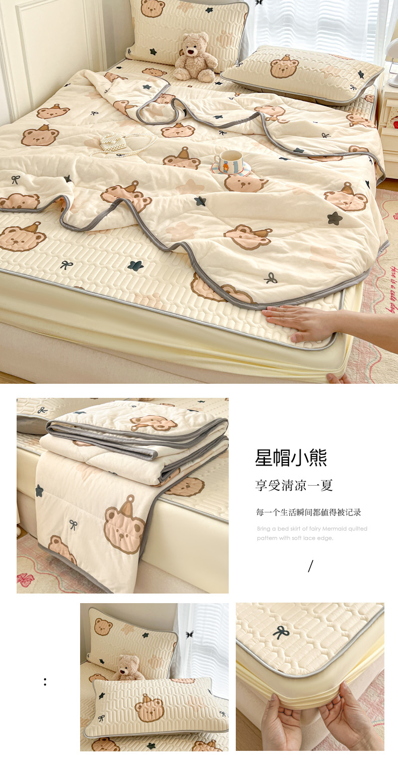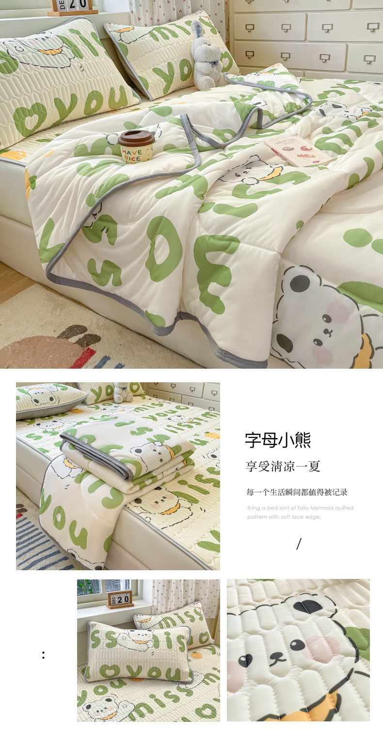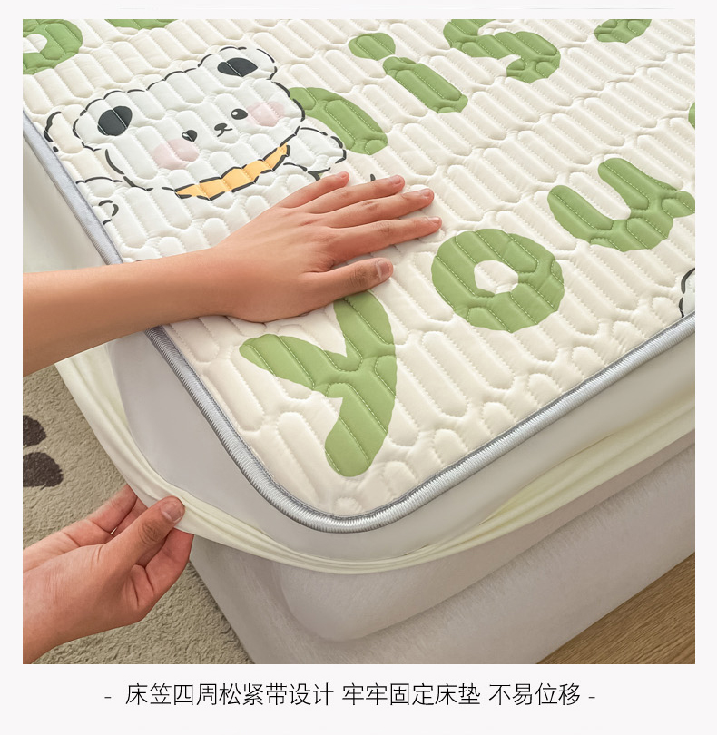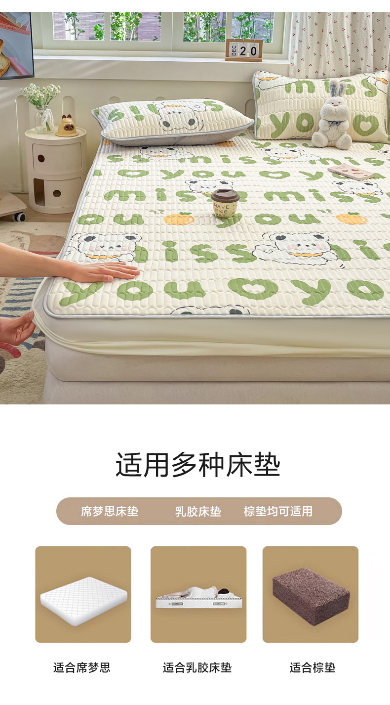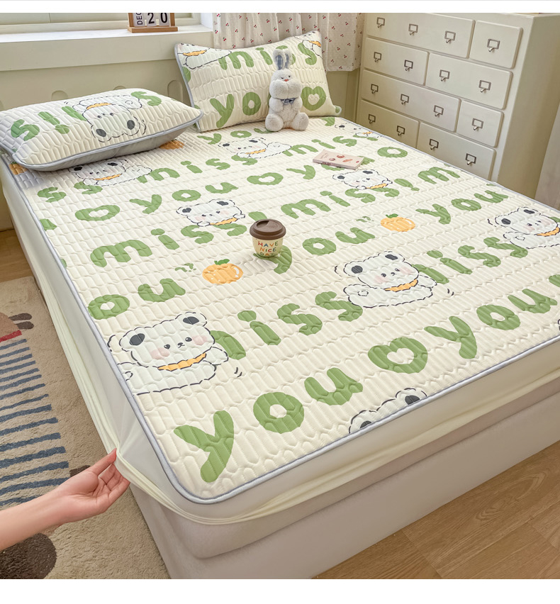 商品名称:柒月家居 2026新款小清新床笠款乳胶凉席床笠夏被四件套 床笠-字母小熊