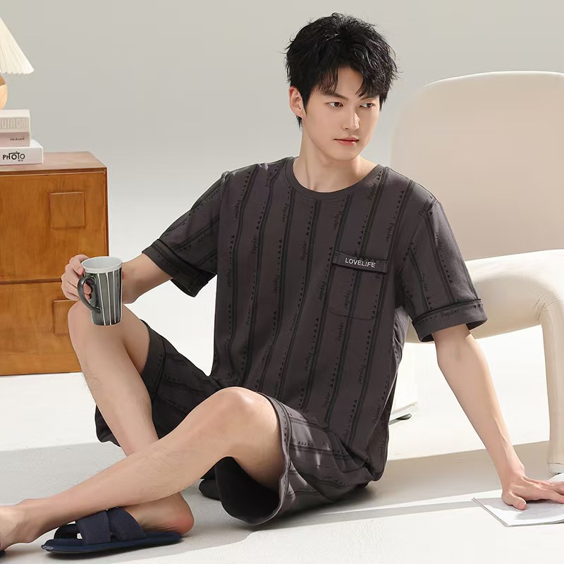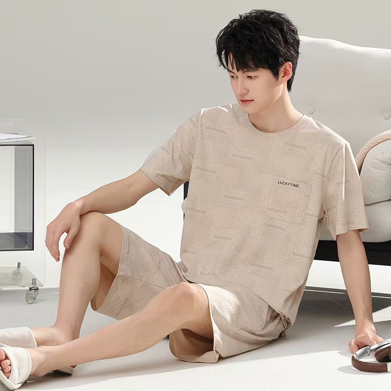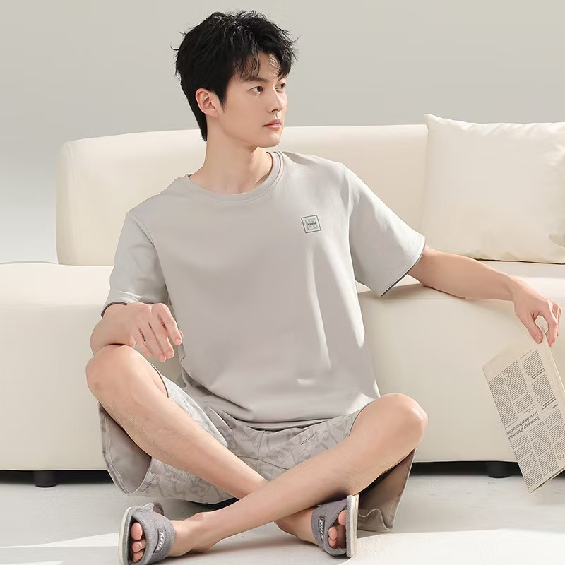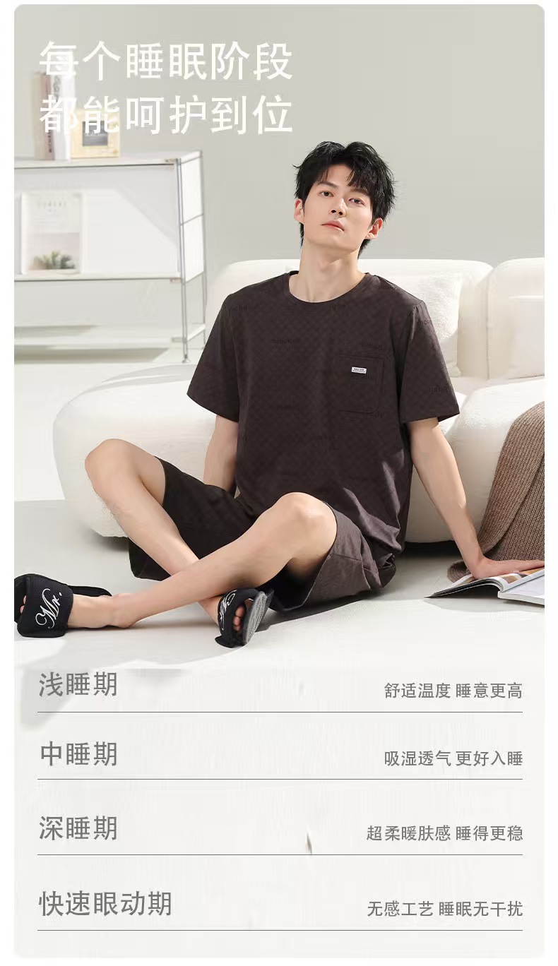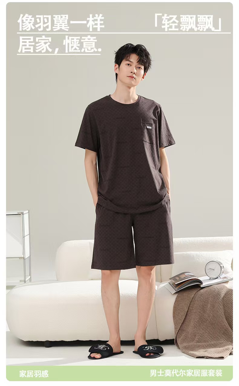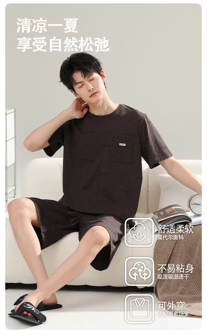 (总)洛兰沙家居馆 无印风素色男款莫代尔短袖短裤家居服休闲宽松舒适大码可外穿