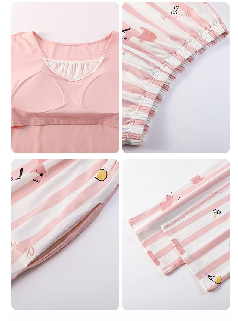 (总)洛兰沙家居馆 日系夏季莫代尔棉短袖长裤家居服休闲宽松舒适大码居家睡衣