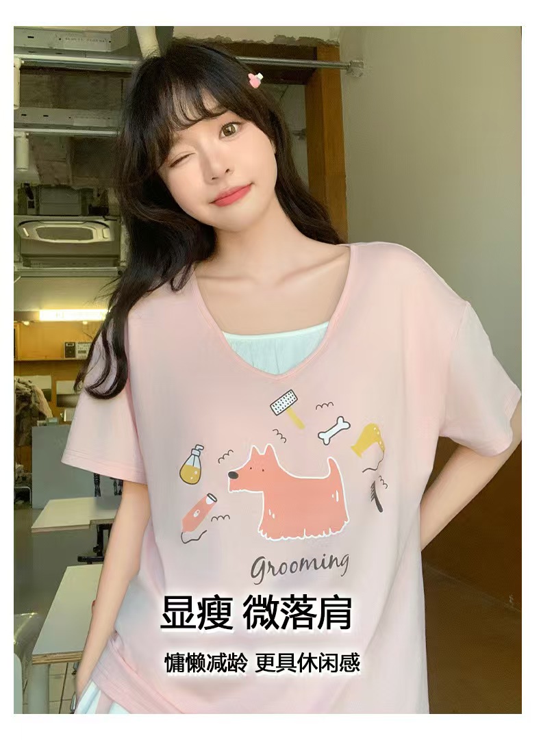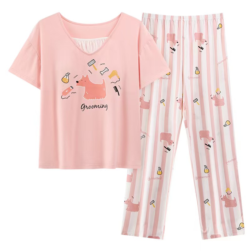 商品名称:(总)洛兰沙家居馆 日系夏季莫代尔棉短袖长裤家居服休闲宽松舒适大码居家睡衣