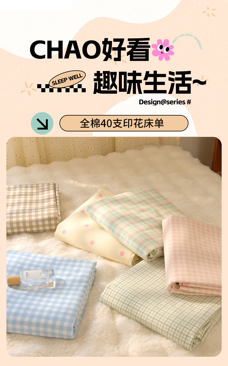 (总)DoDo 兜兜 2026年全棉纯棉ins风小清新单品床单 床单单件,波点奶盖,彩虹奶盖,青提奶盖,晴空奶盖,太妃奶盖,樱粉奶盖