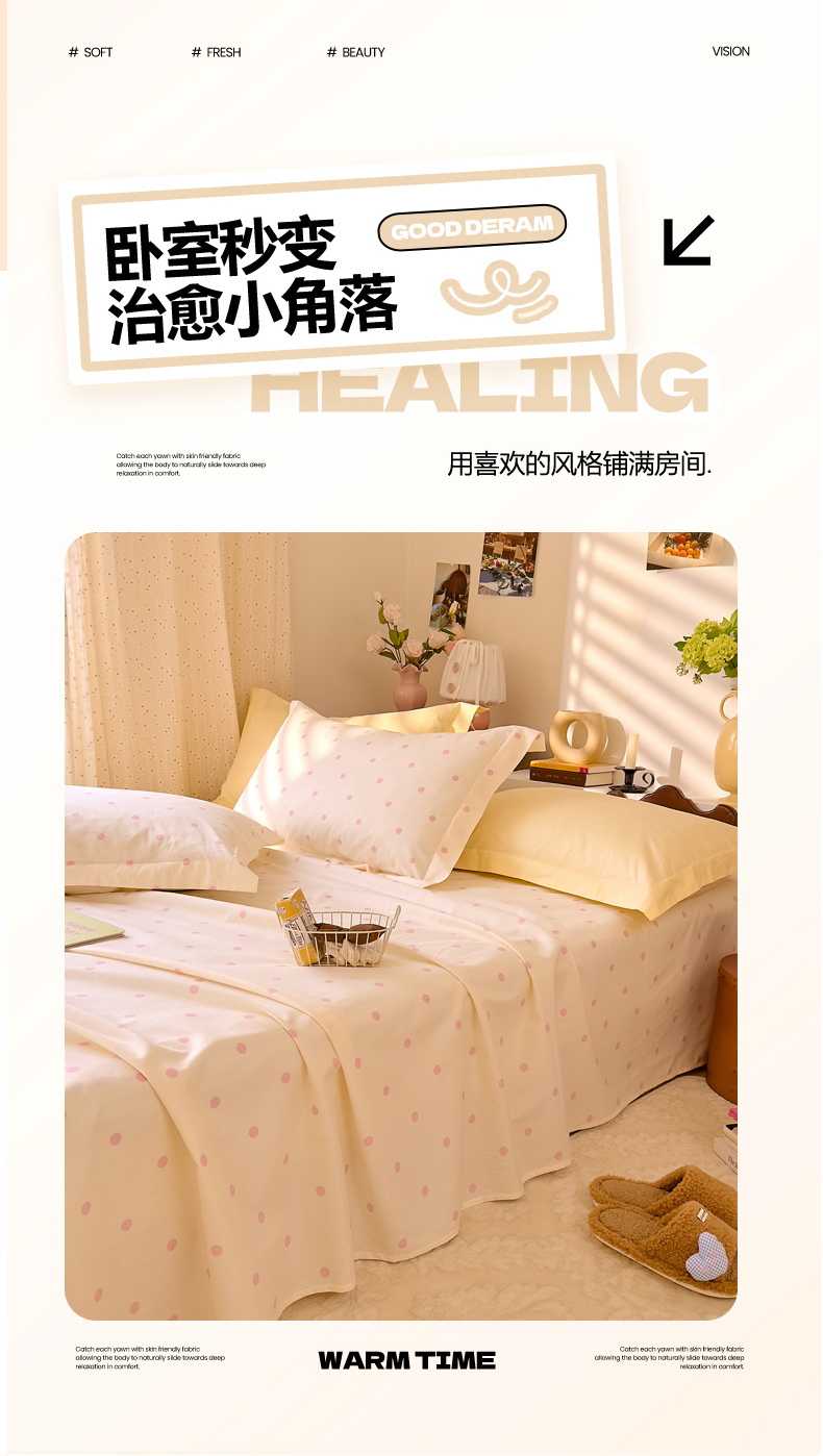 商品名称:DoDo 兜兜 2026年全棉纯棉ins风小清新单品床单 床单单件 波点奶盖