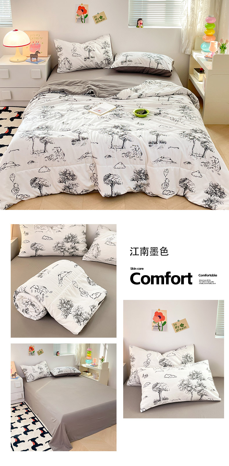(总)卡斯诺家纺馆 2026新款水洗棉棉花夏被四件套,茶绿奶黄,宝兰深灰,魅紫浅粉,米白藏青,奶黄深咖,浅灰深灰,天蓝奶黄,雾蓝天蓝