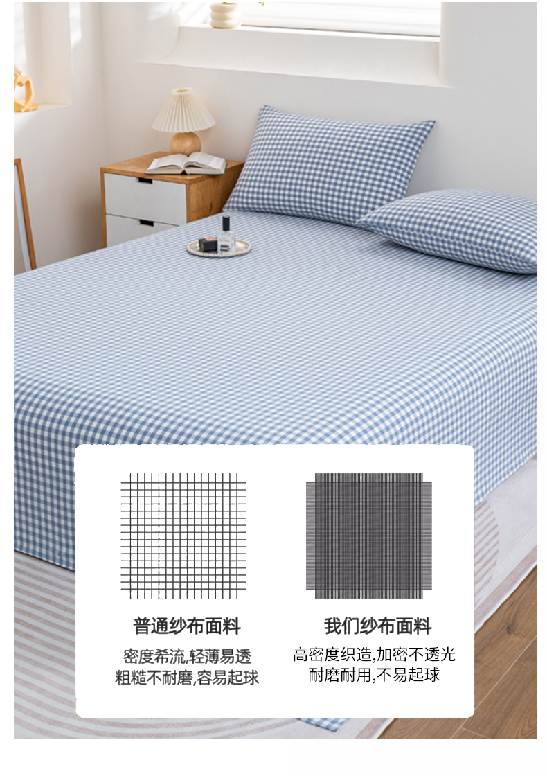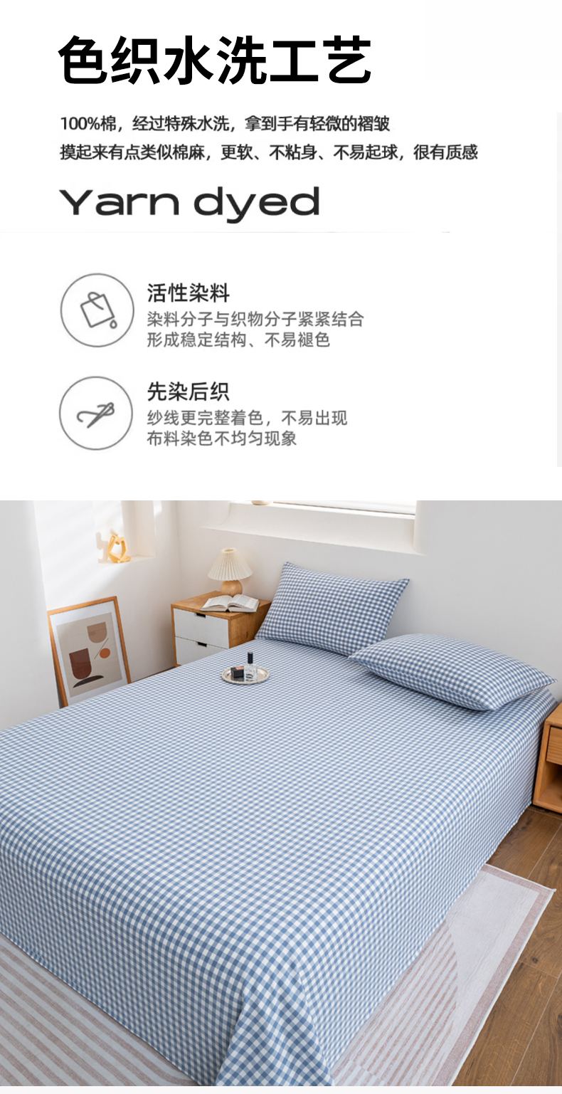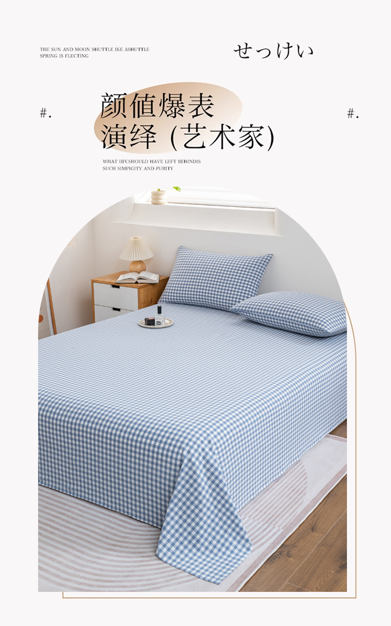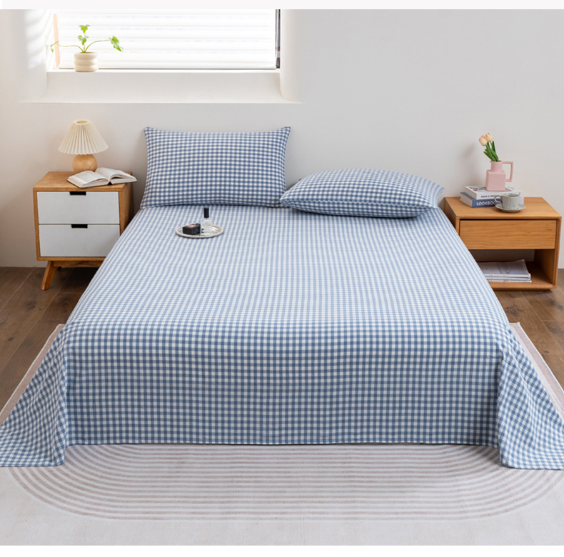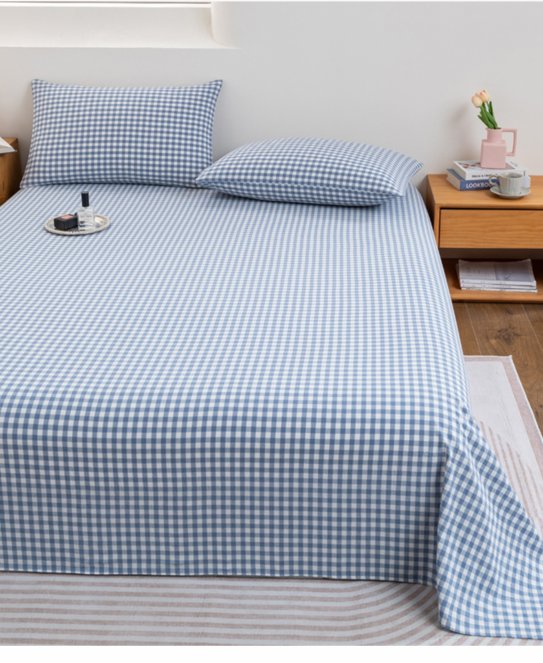 • 91家纺网 家纺一手货源 找家纺 居美良品 2026新款100%全棉色织水洗棉A类纯棉床单单品床单床单单件 蓝小格