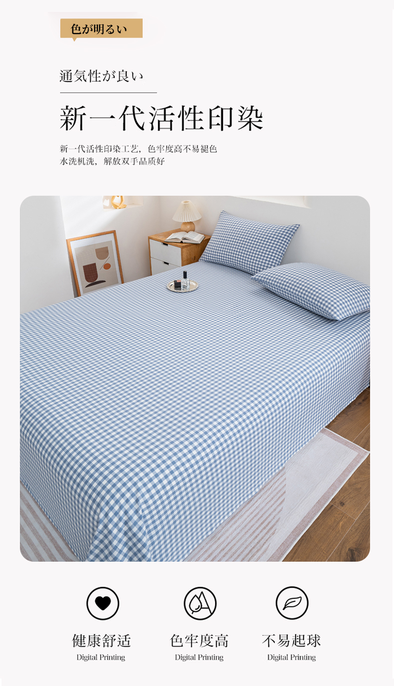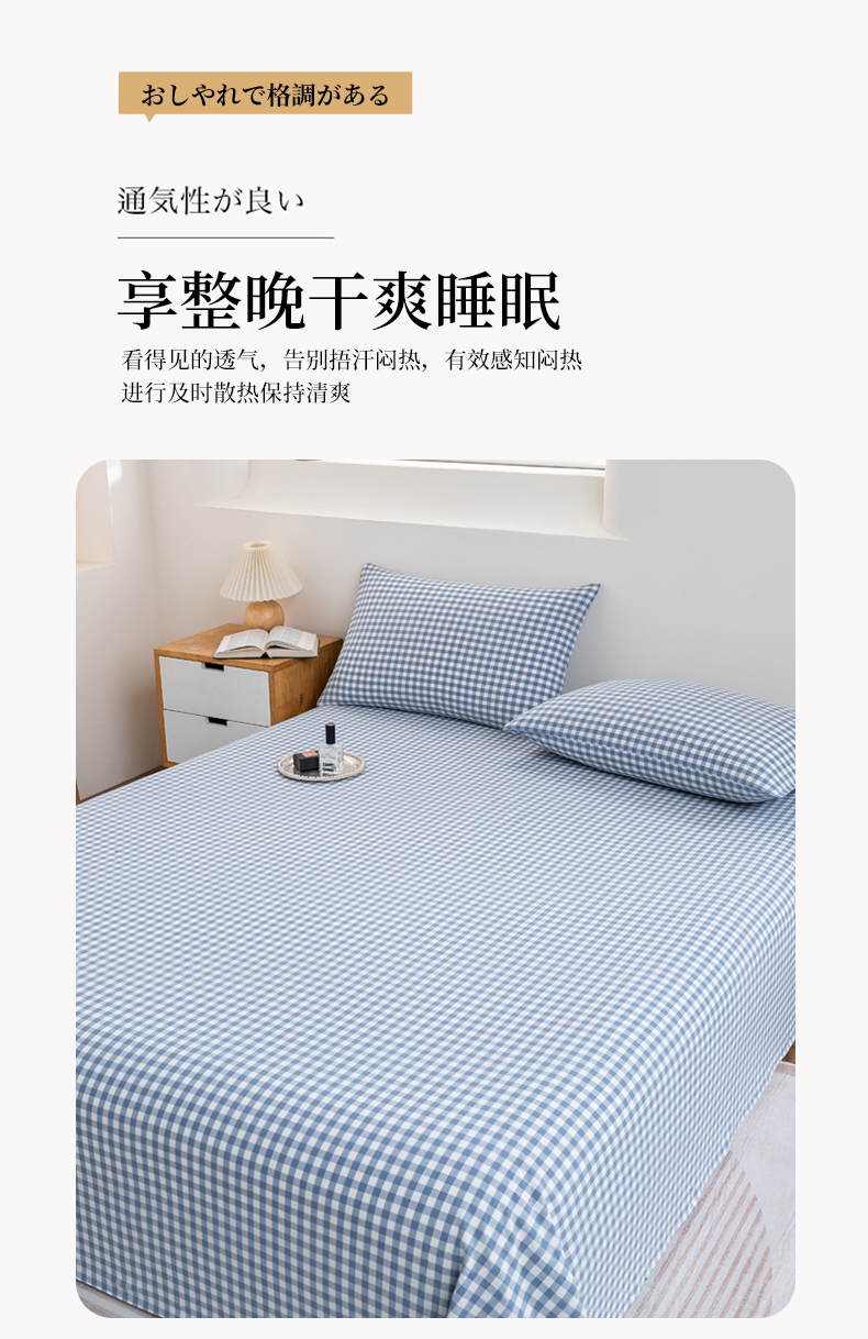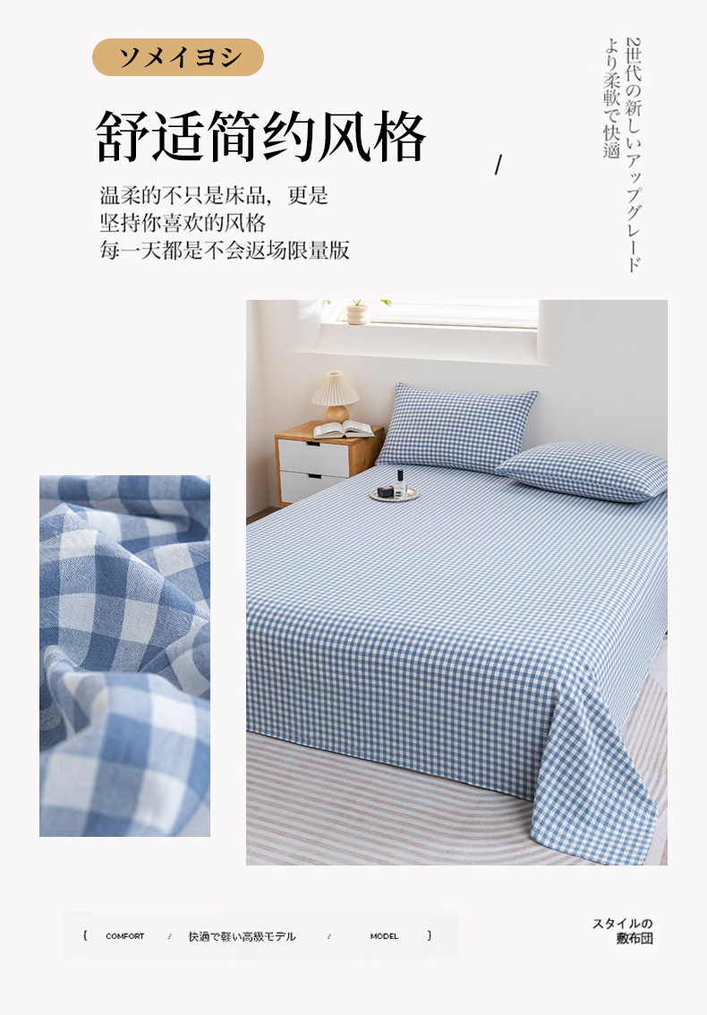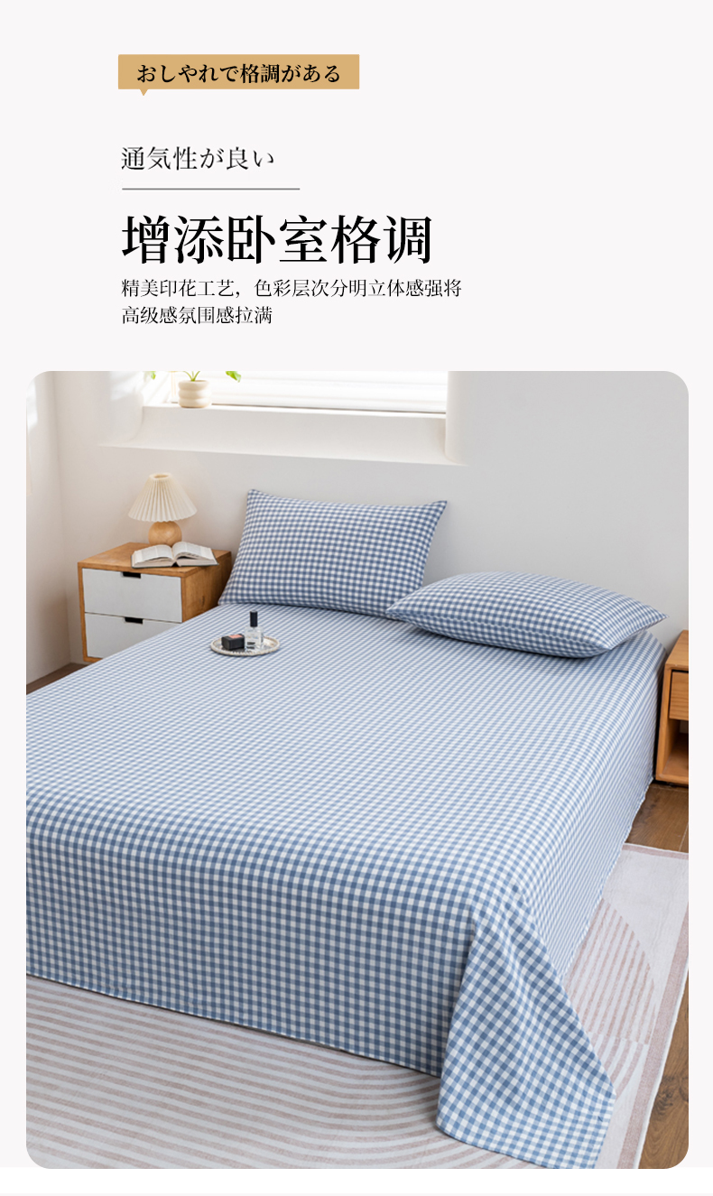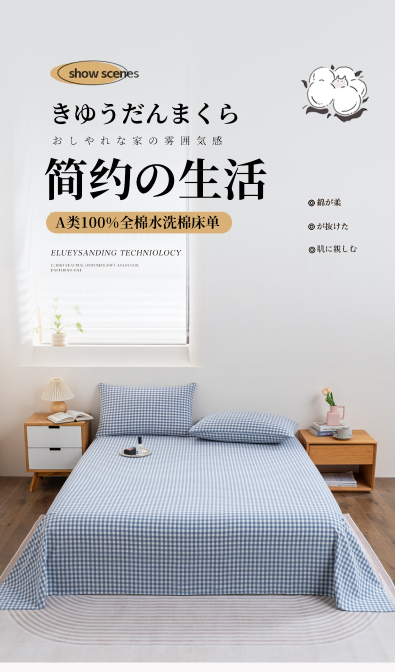 • 91家纺网 家纺一手货源 找家纺 居美良品 2026新款100%全棉色织水洗棉A类纯棉床单单品床单床单单件 蓝小格