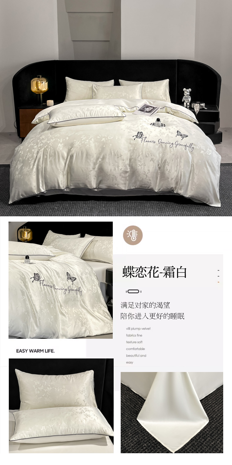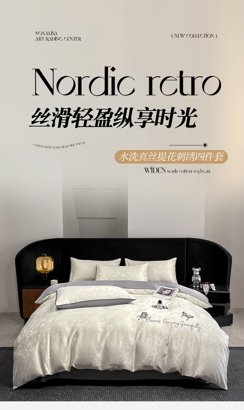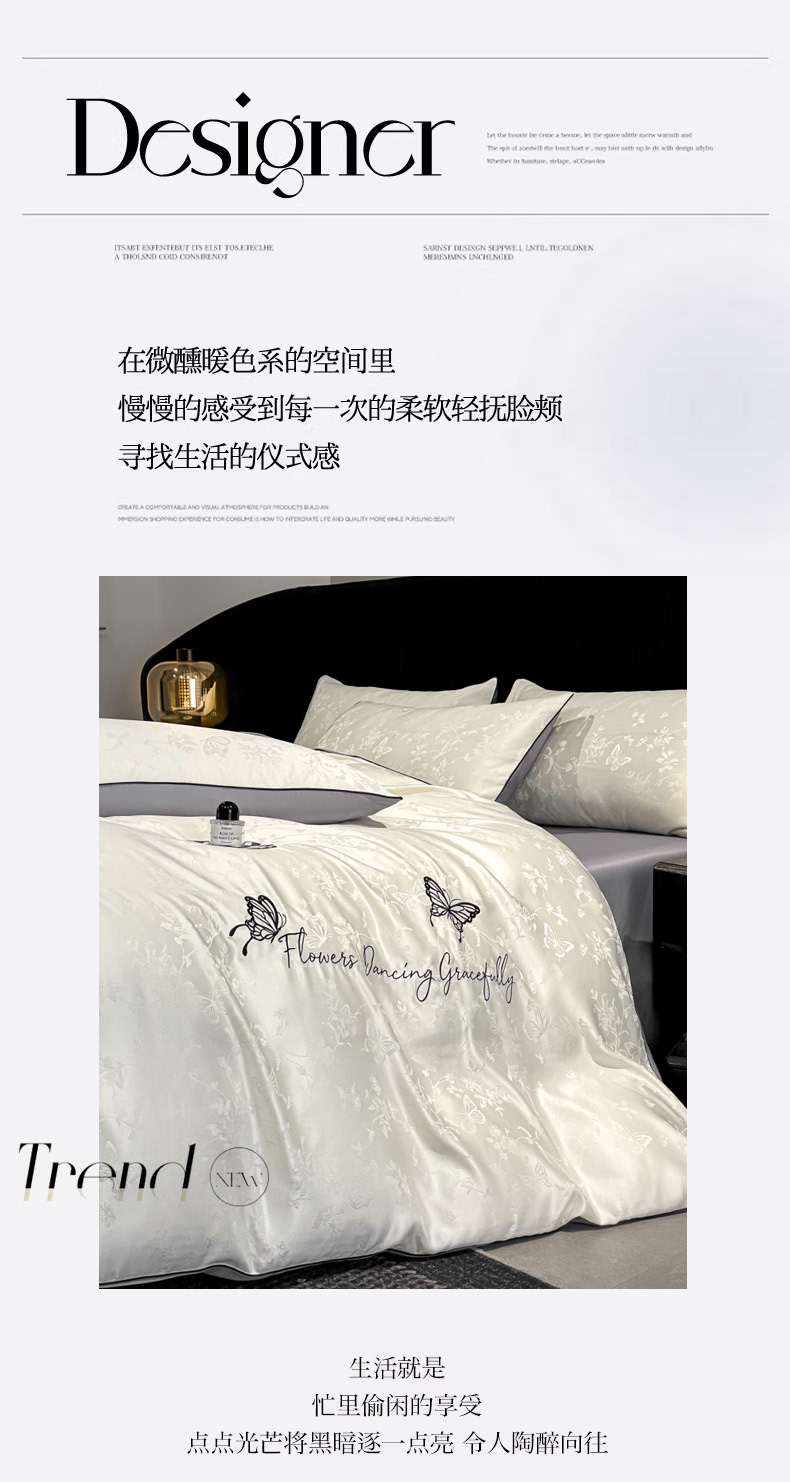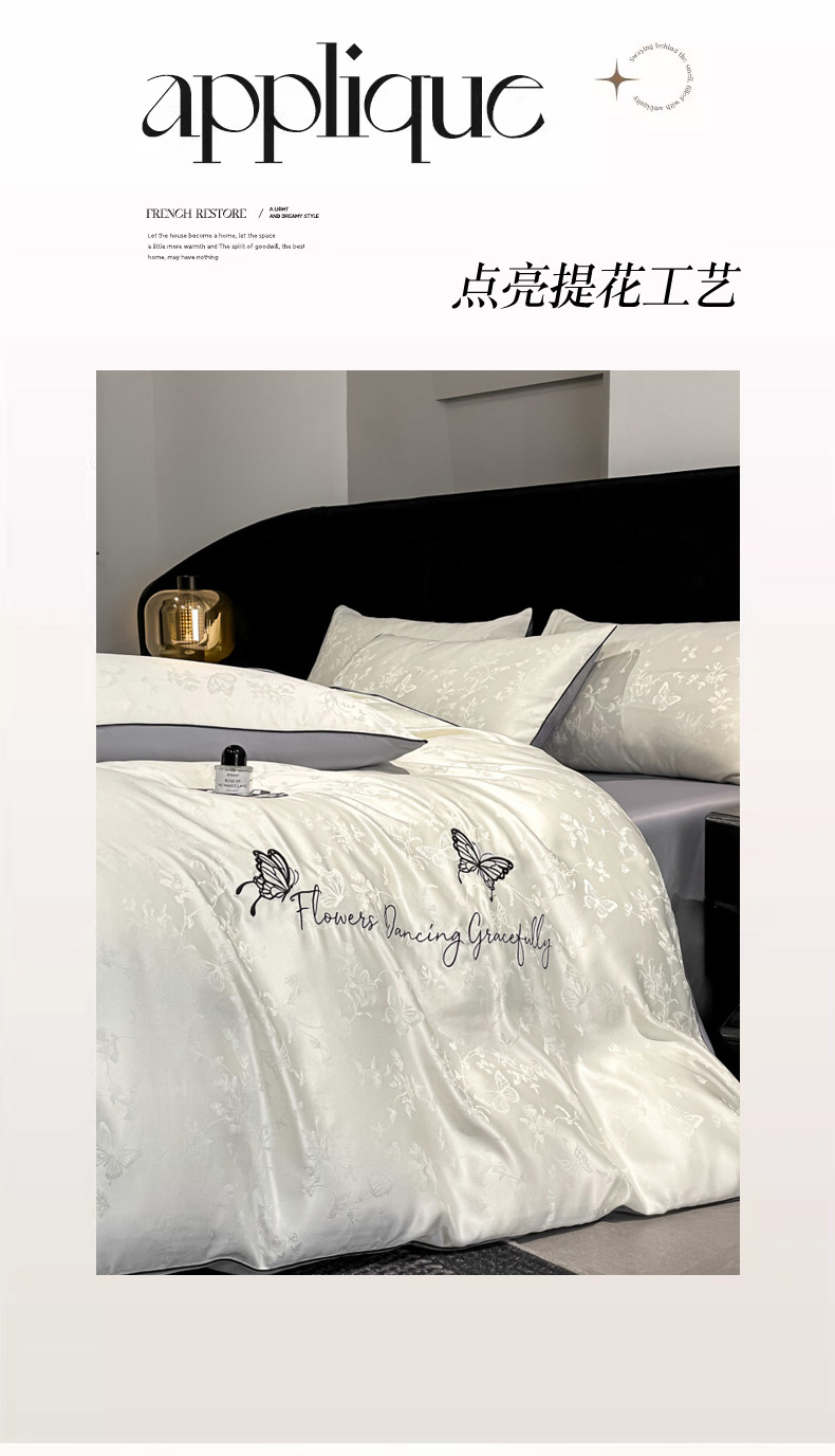 当前位置: 91家纺网 > 商品网购 > 床品套件 > 四件套 > 其它四件套 > 慕澄家纺 2026新款厚织亮丝提花刺绣水洗真丝四件套 蝶恋花-白+灰