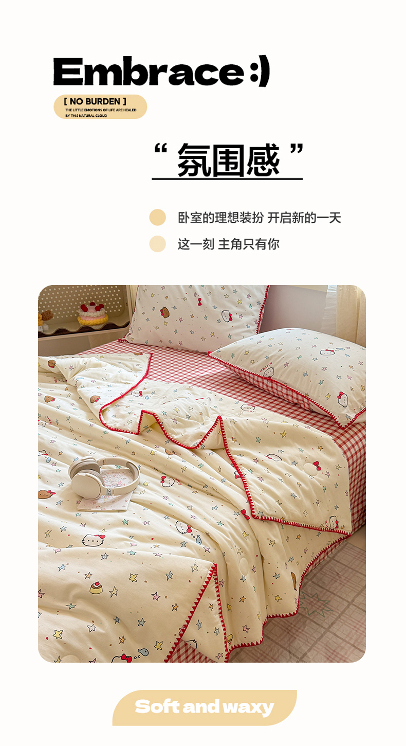 (总)沐辰 2026新款A类贝壳边全棉纯棉棉花夏被夏凉被空调被,安睡小熊,黑猫奶咖,蜡笔萌趣,奶熊甜梦,兔叽星梦,星星猫,治愈小狗