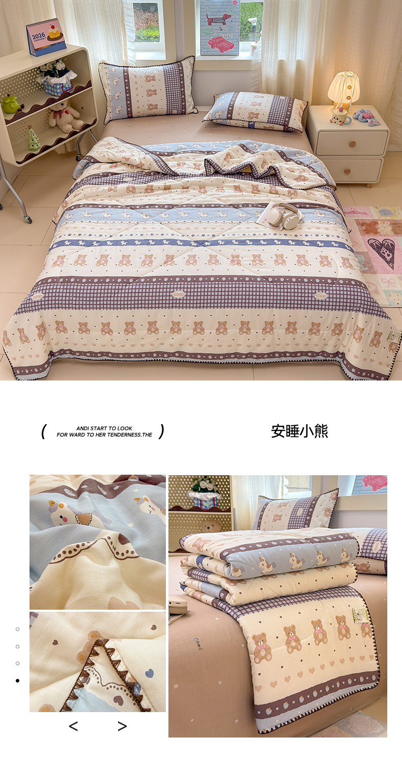 • 91家纺网 家纺一手货源 找家纺 沐辰 2026新款A类贝壳边全棉纯棉棉花夏被夏凉被空调被 安睡小熊