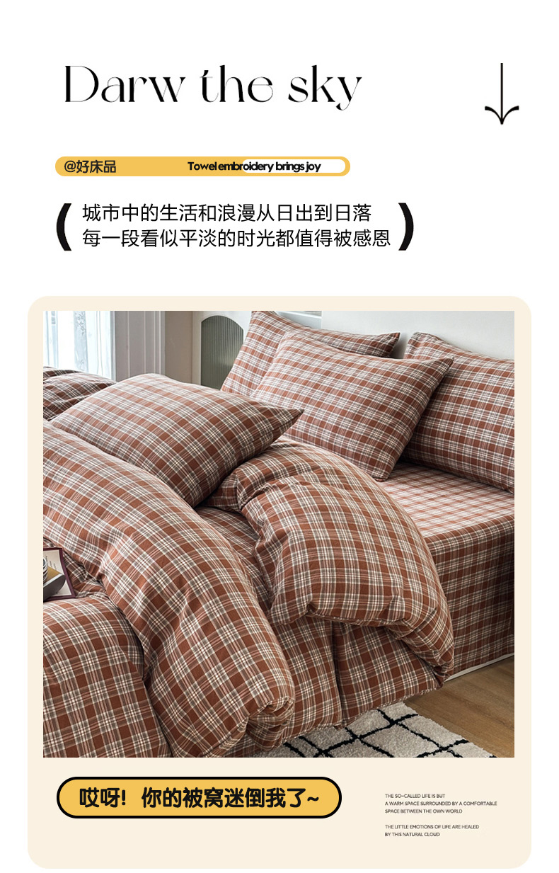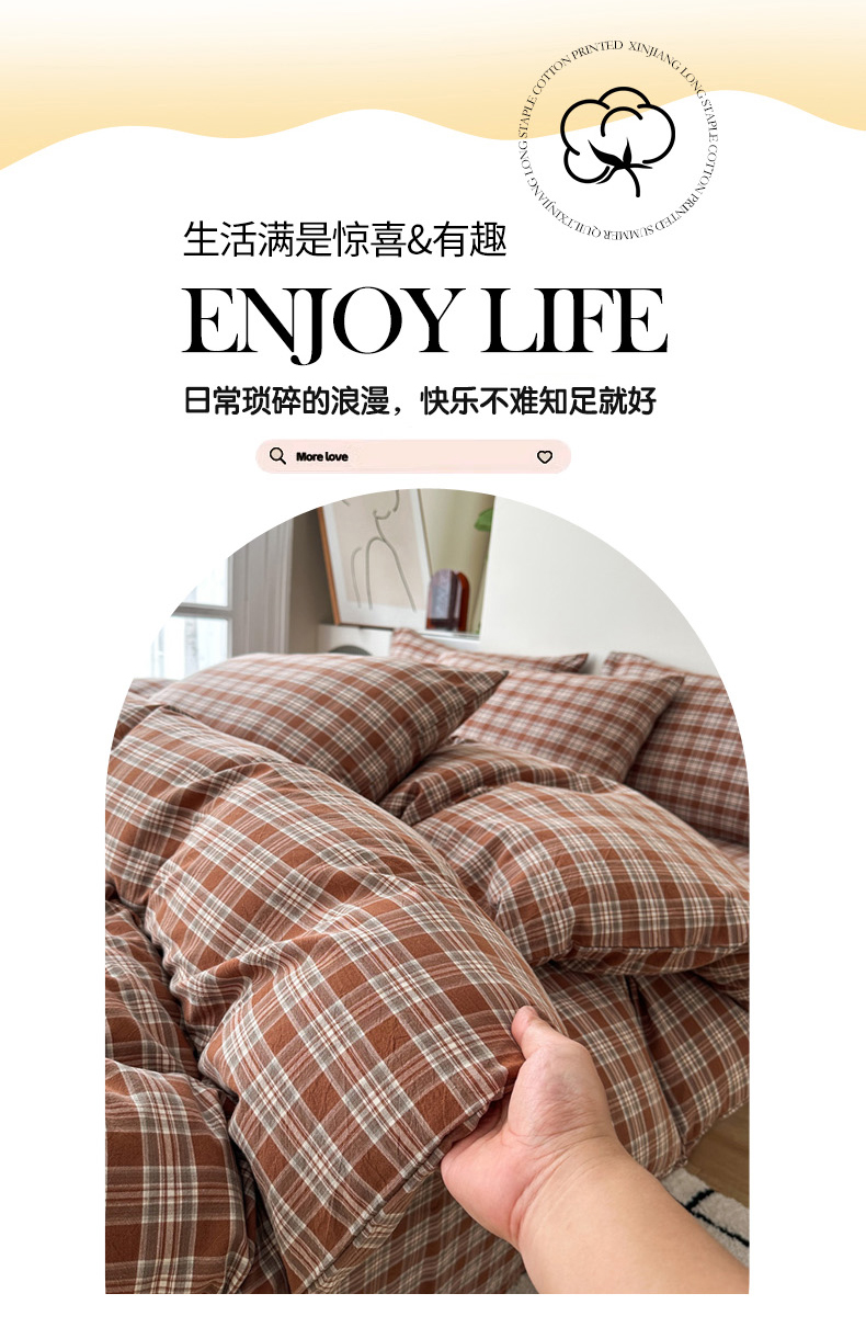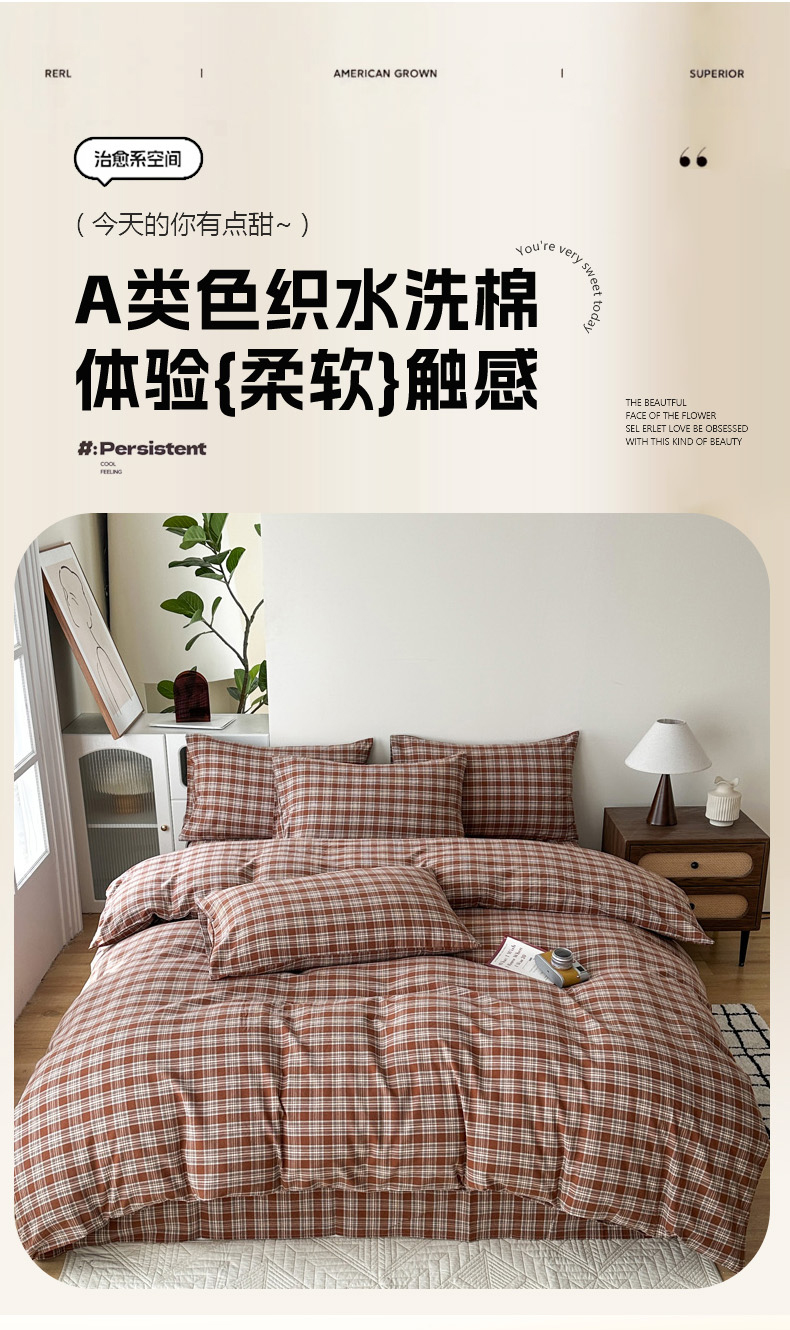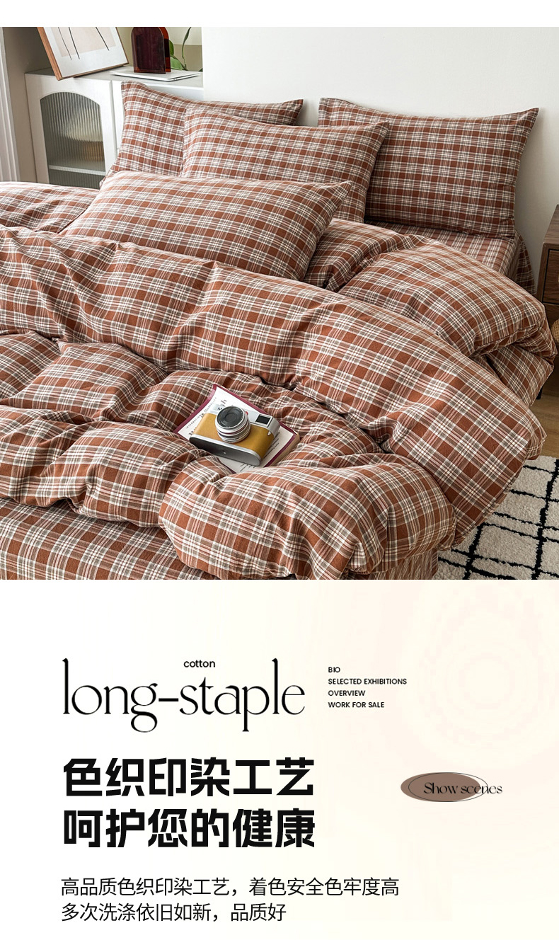 当前位置: 91家纺网 > 商品网购 > 床品套件 > 四件套 > 全棉普通四件套 > 蓝梦 2026新款全棉纯棉色织水洗棉简约四件套-繁花 繁花-咖