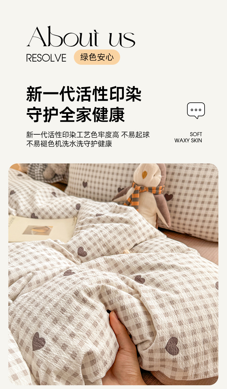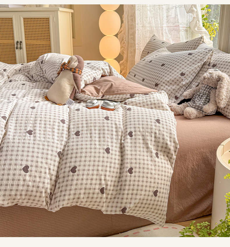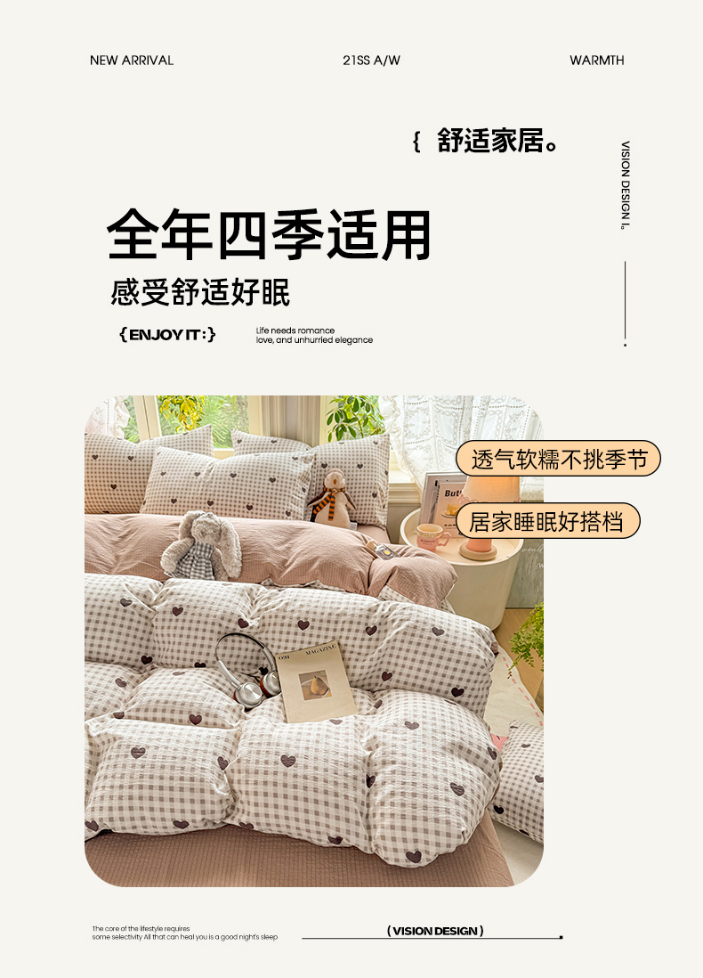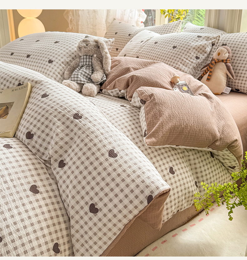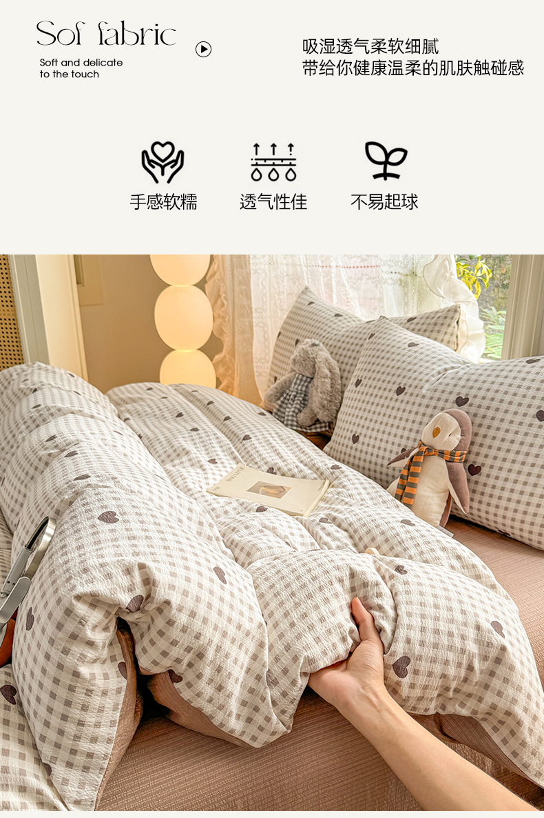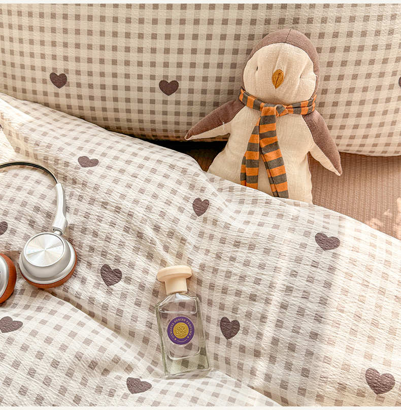 当前位置: 91家纺网 > 商品网购 > 床品套件 > 四件套 > 化纤普通四件套 > 丝芙妮家居 2026新款皱皱棉双层纱泡芙棉四件套 格纹爱心