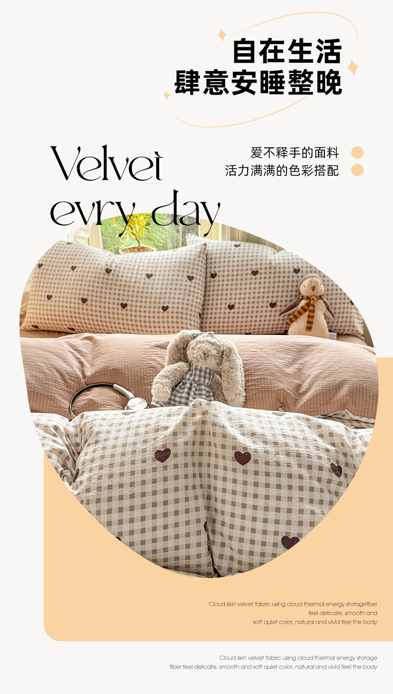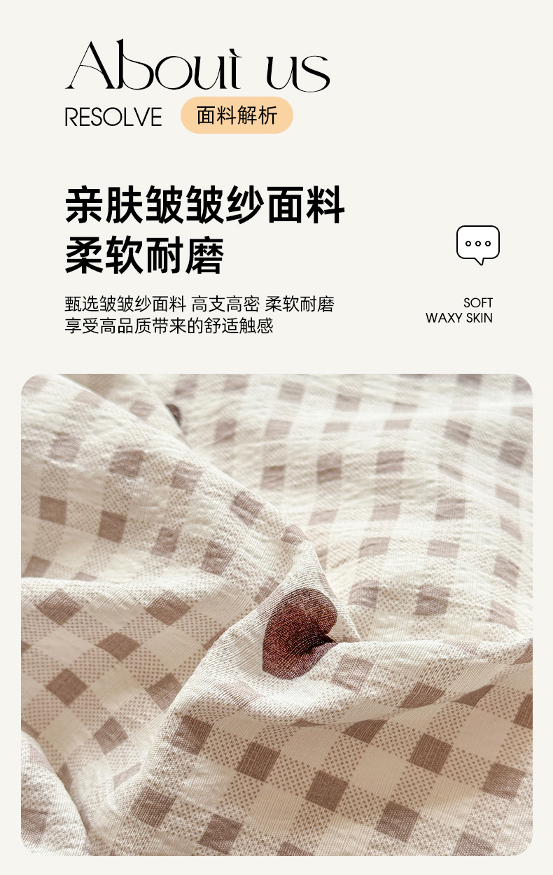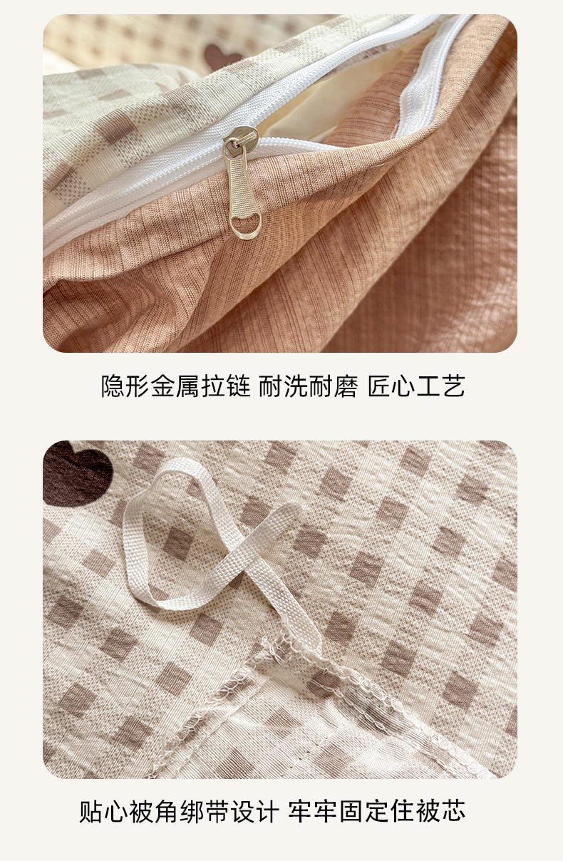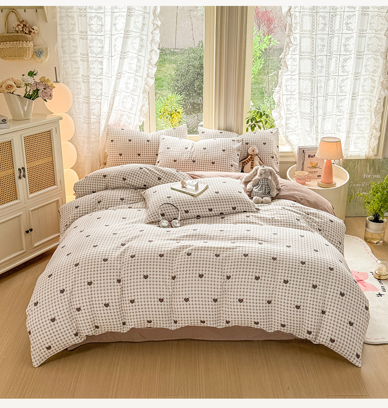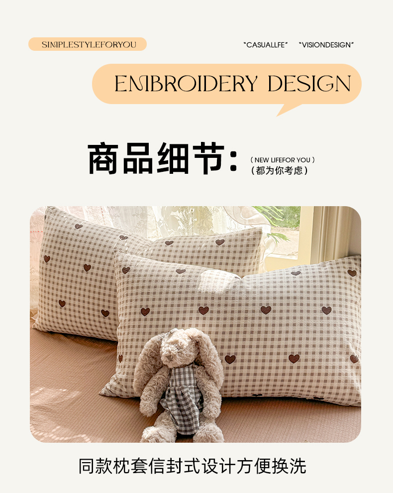当前位置: 91家纺网 > 商品网购 > 床品套件 > 四件套 > 化纤普通四件套 > 丝芙妮家居 2026新款皱皱棉双层纱泡芙棉四件套 格纹爱心