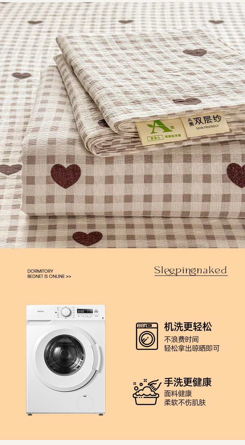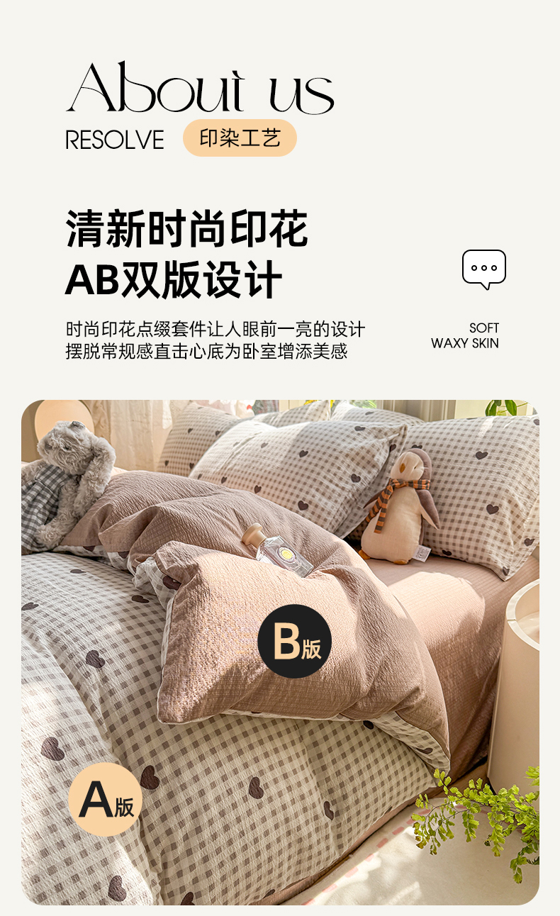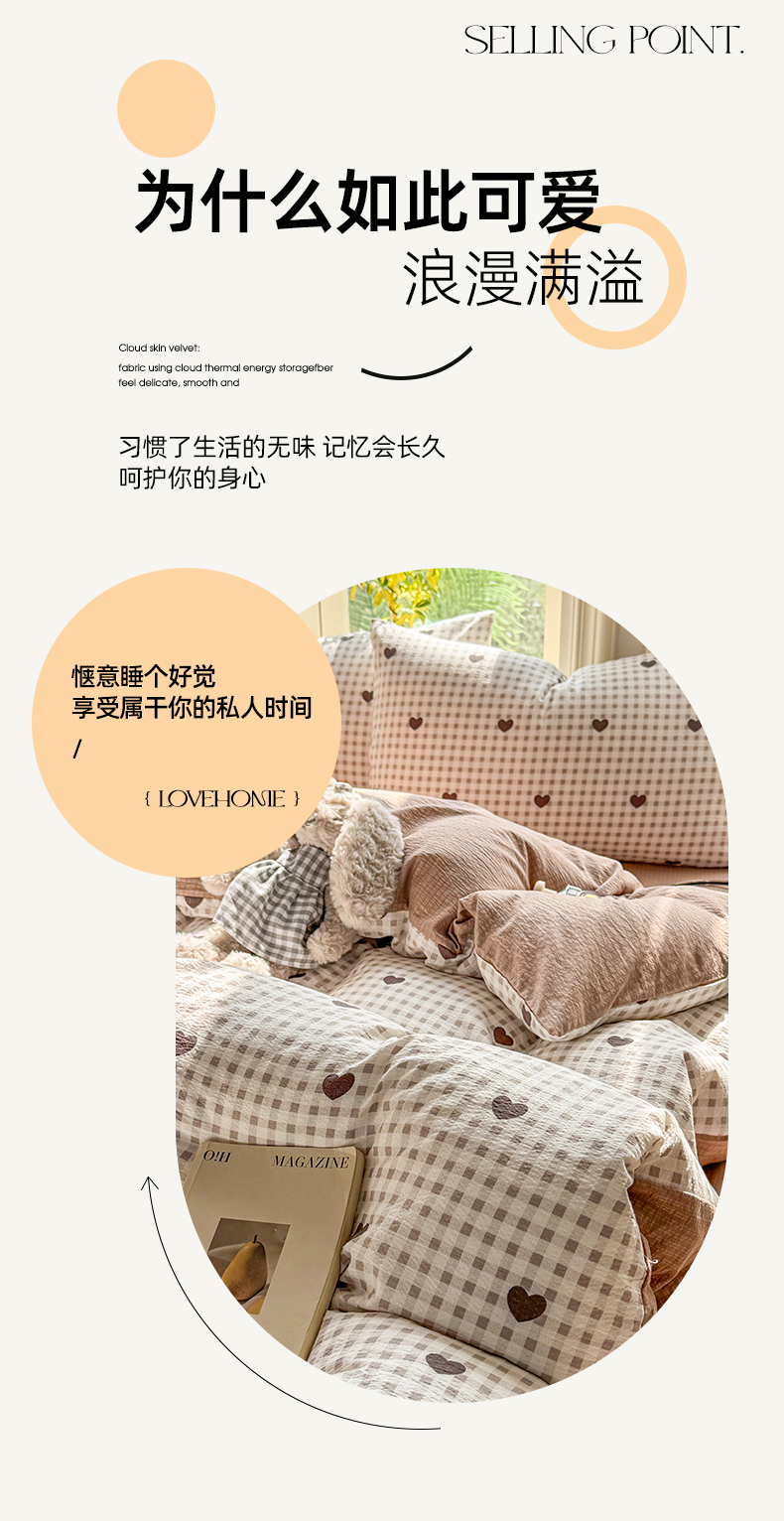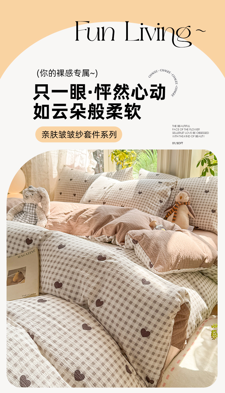 当前位置: 91家纺网 > 商品网购 > 床品套件 > 四件套 > 化纤普通四件套 > 丝芙妮家居 2026新款皱皱棉双层纱泡芙棉四件套 格纹爱心
