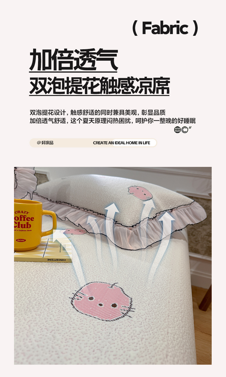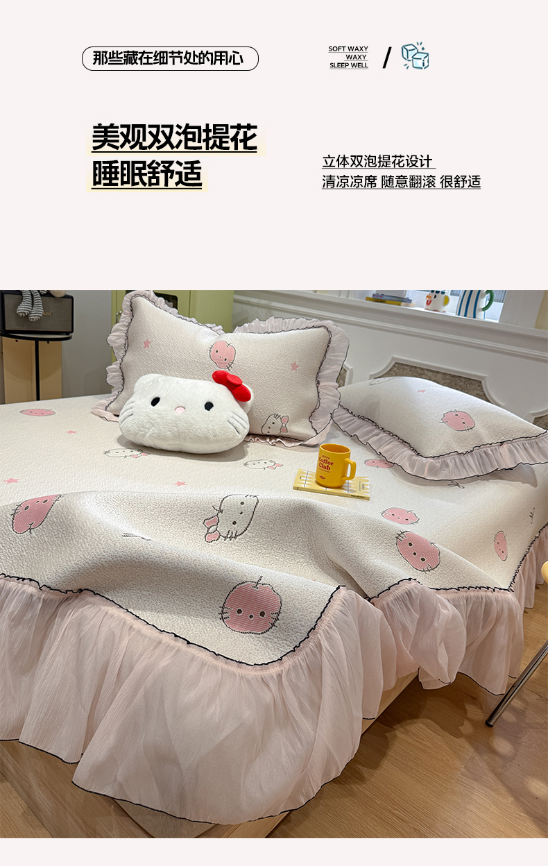 (总)雅居纺家纺 2026新款PE凉感卡通床裙床盖凉席韩版花边加厚三明治底PE凉感席
