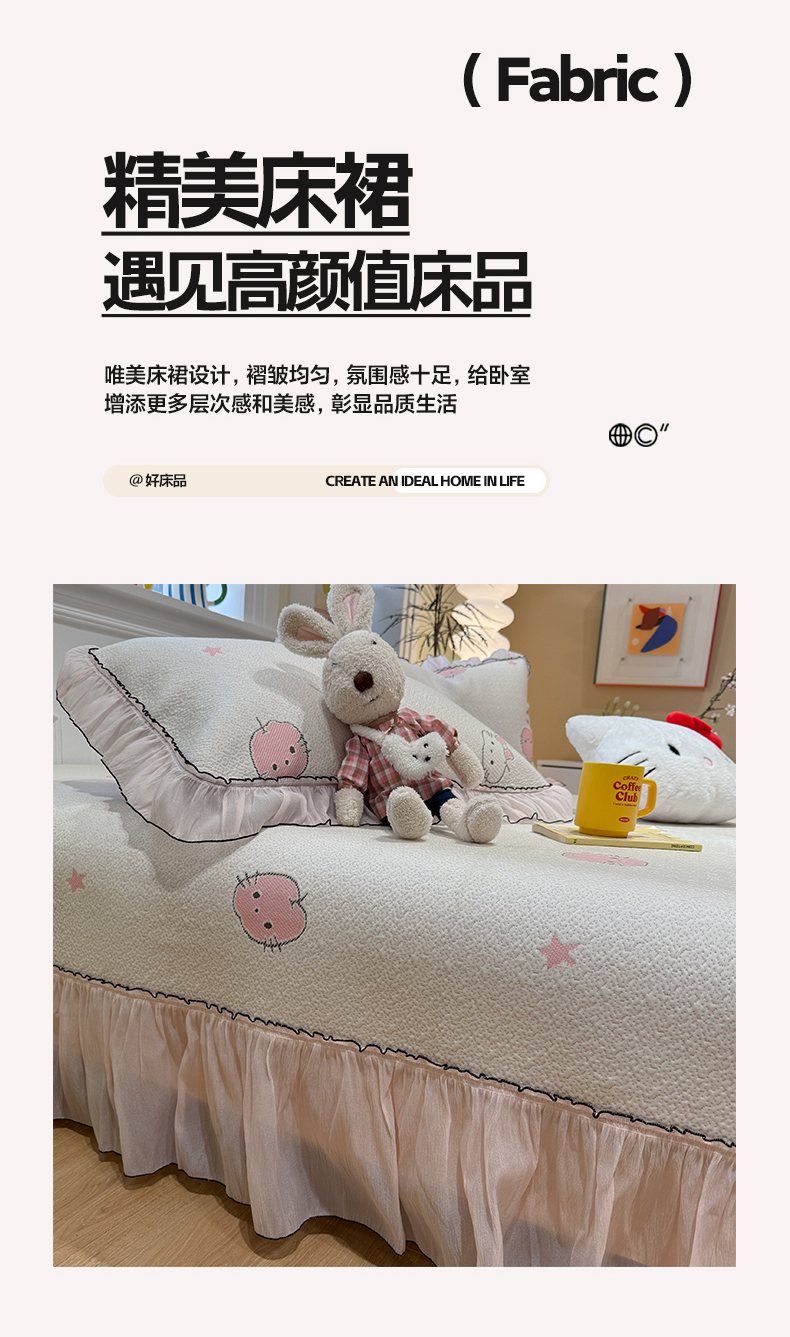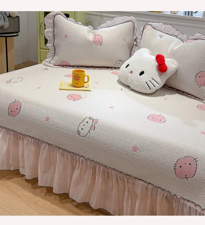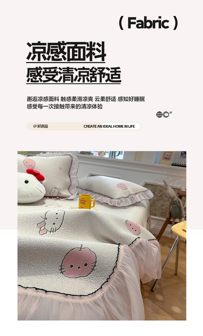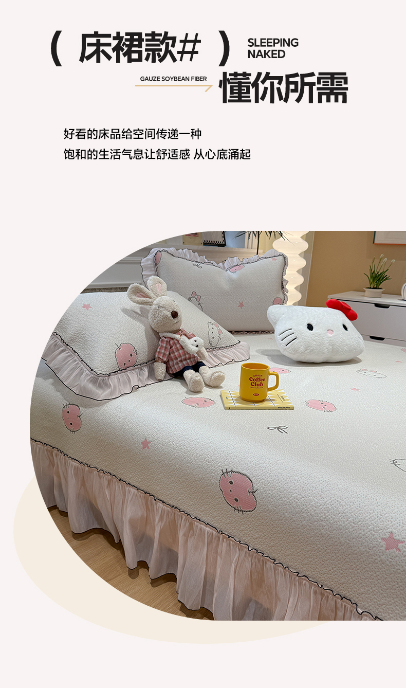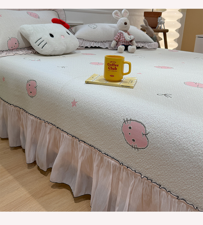 商品名称:(总)雅居纺家纺 2026新款PE凉感卡通床裙床盖凉席韩版花边加厚三明治底PE凉感席