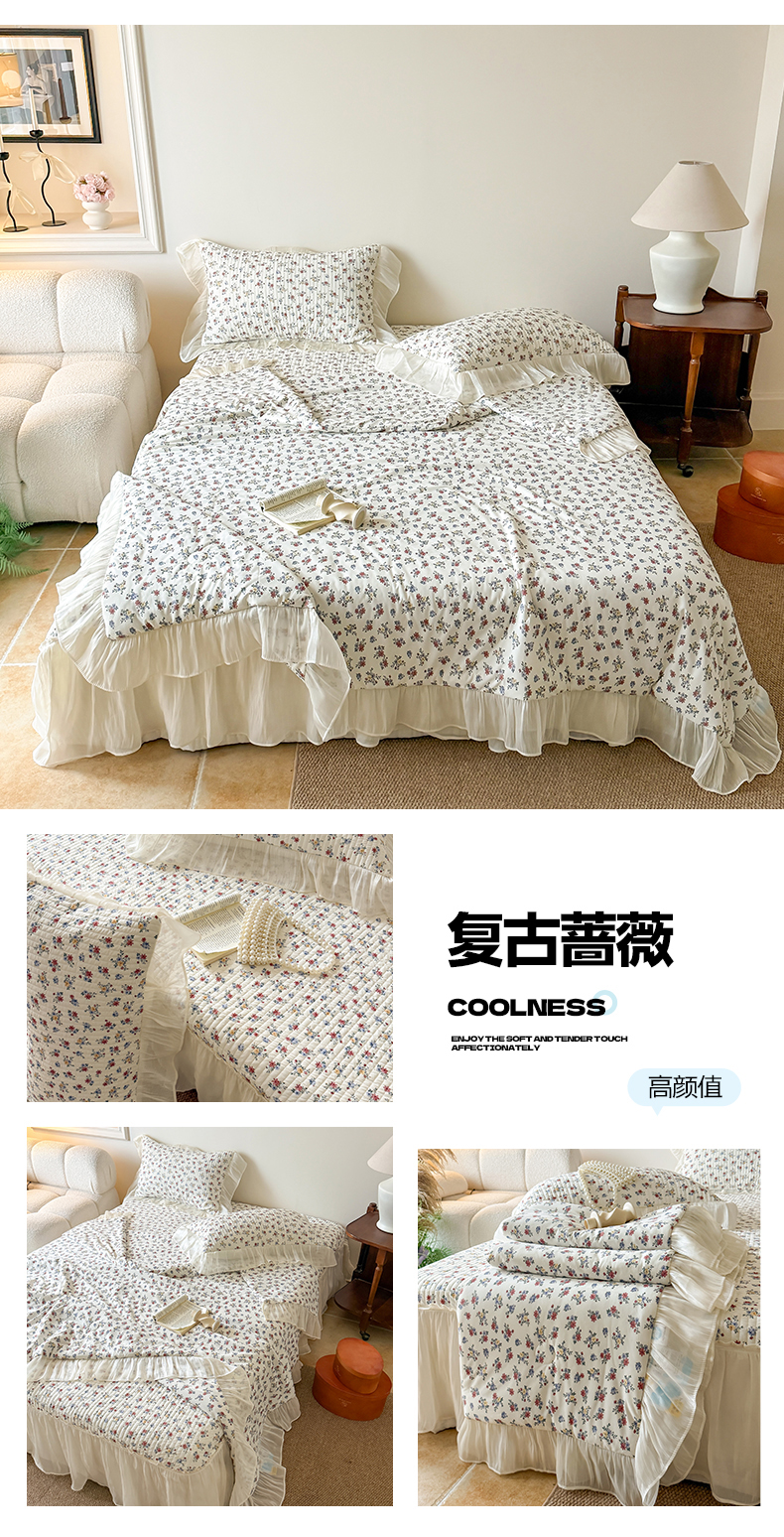商品名称:吾欢心 2026新款仿锦安法式花边凉感丝床盖款夏凉被四件套软凉席三件套小冰皮空调被 清蔓雅序