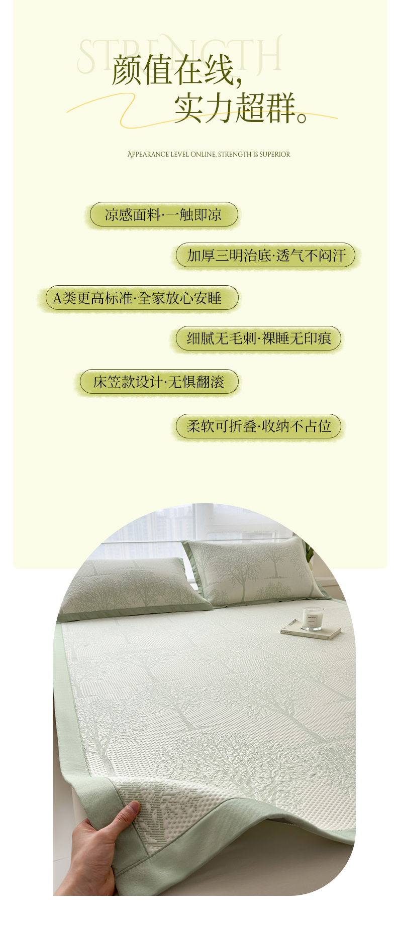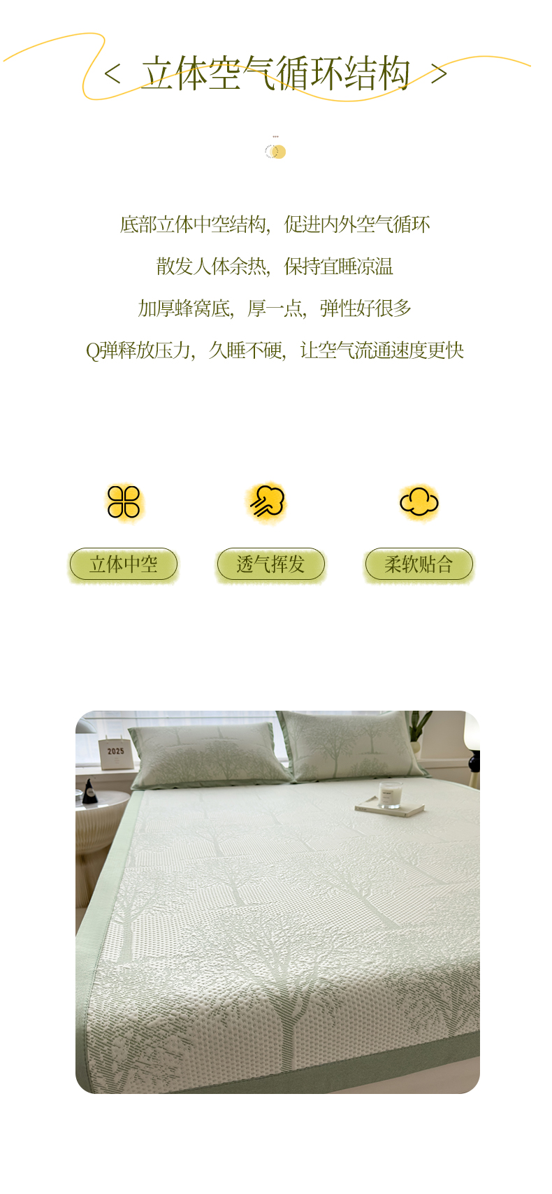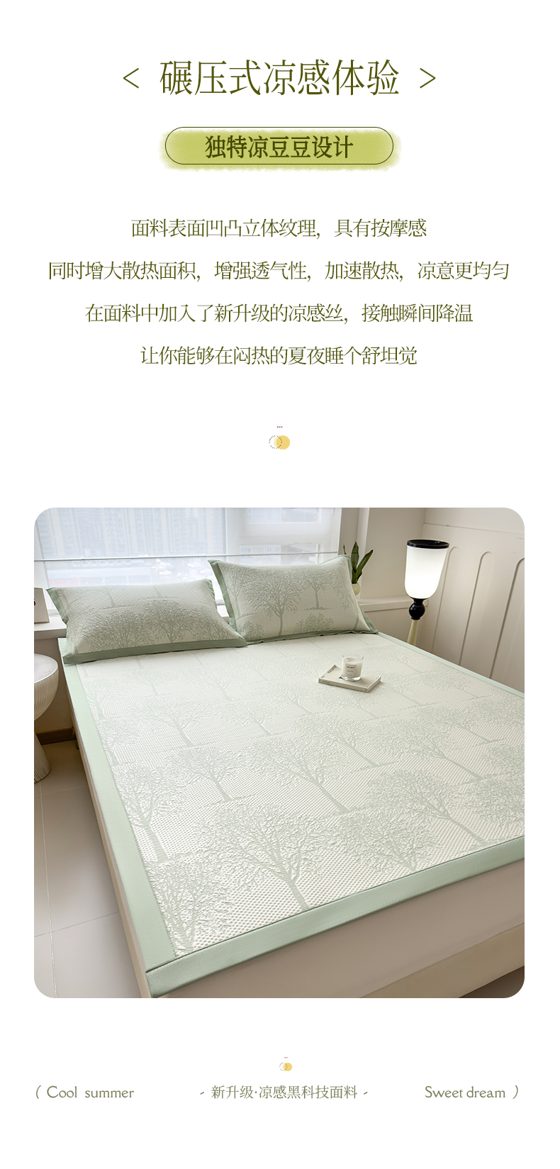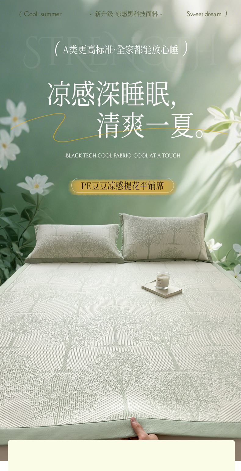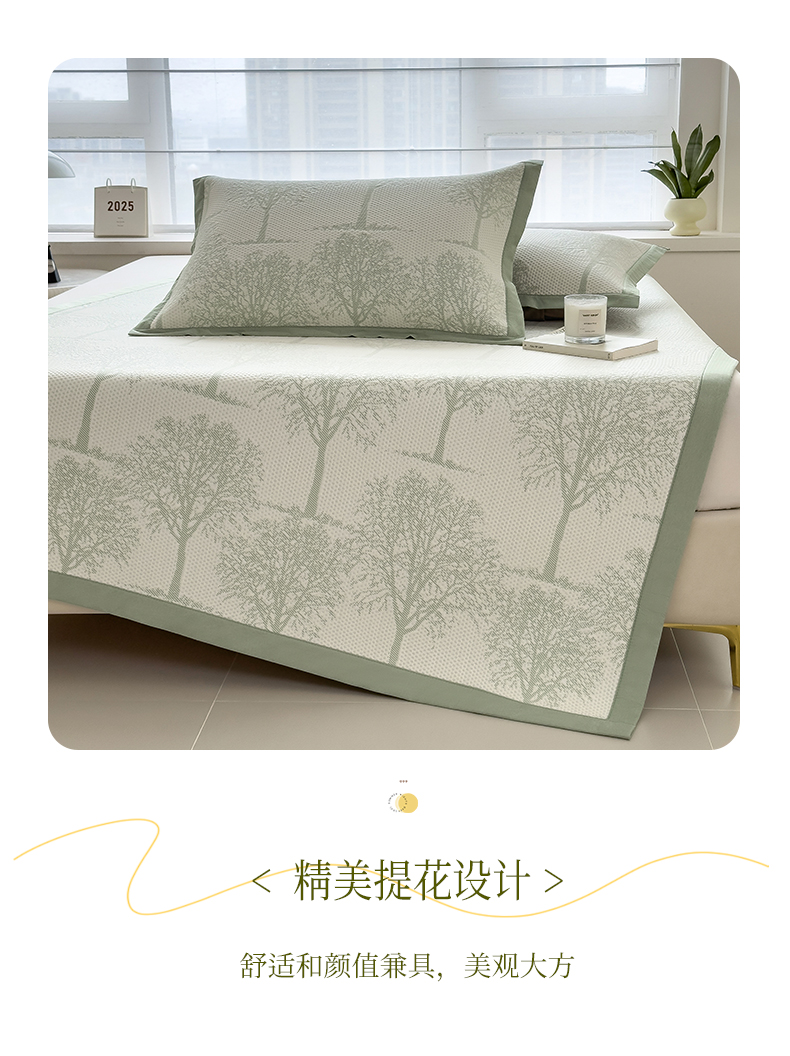 倾慕家纺 2026新款PE时尚风豆豆凉席花卉系列--床席款 树树相邻床席款