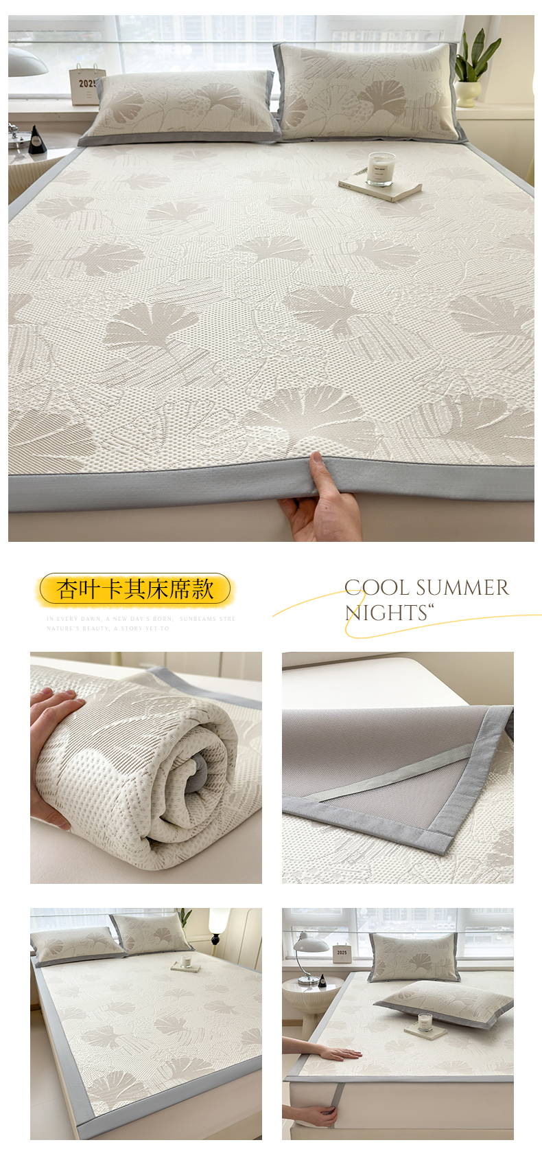 (总)倾慕家纺 2026新款PE时尚风豆豆凉席花卉系列--床席款,布达春雨床席款,大叶绿床席款,枫叶床席款,满江花床席款,迷宫灰床席款,树树相邻床席款,夏日清新卡其床席款,夏日清新蓝床席款,夏日清新绿床席款,写意玫瑰床席款,杏叶灰床席款,杏叶卡其床席款