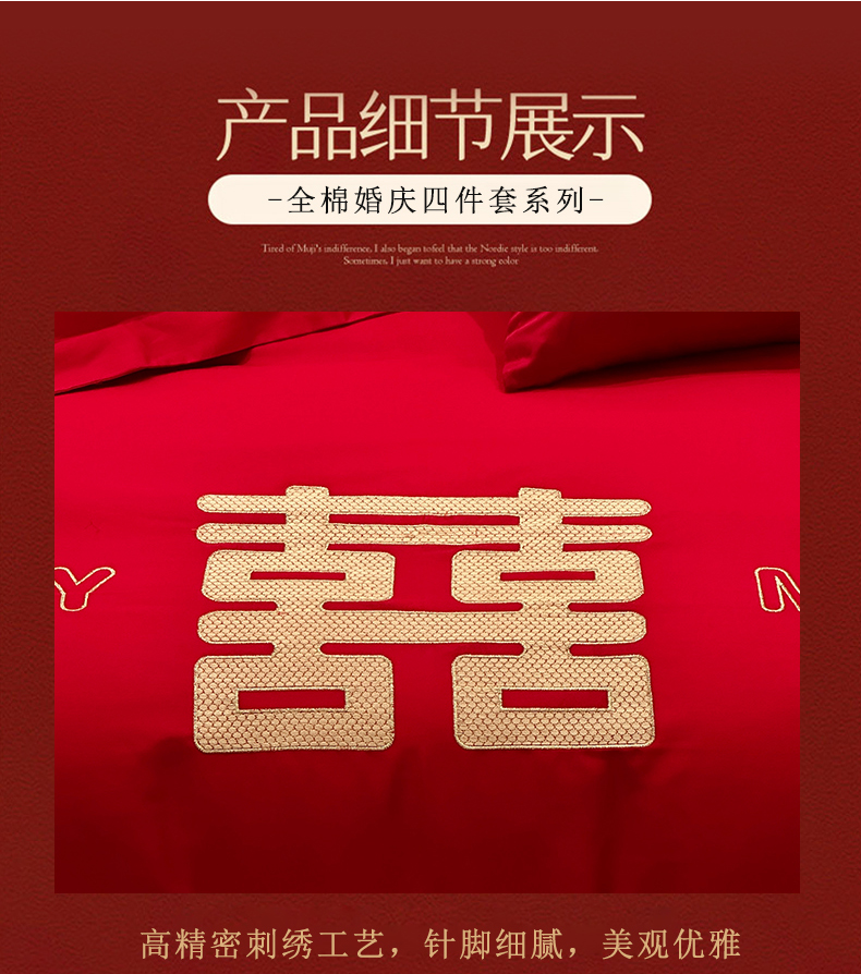 当前位置: 91家纺网 > 商品网购 > 床品套件 > 四件套 > 婚庆四件套 > JUICY 橘滋家纺 2026新款全棉大红刺绣婚庆实惠款四件套多件套 喜悦锦簇-红