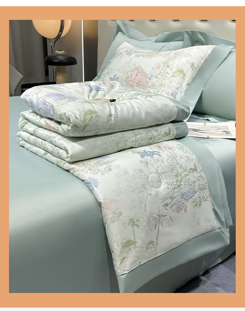 爱彼家纺 2026夏季热门数码冰丝水墨画风单夏被凉感冰丝夏被四件套 夏被-森林密语