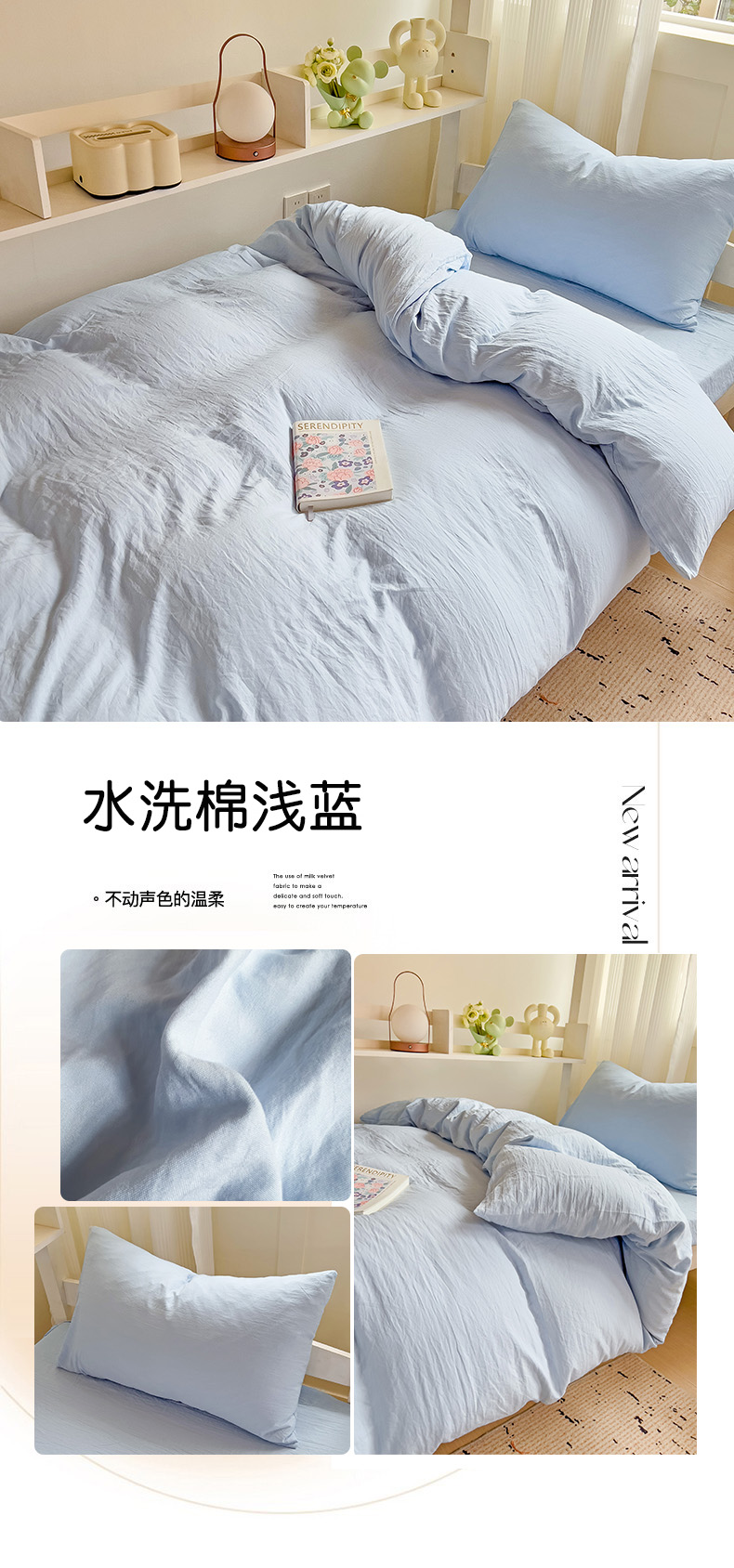 (总)欧妮家纺 2025新款纯色水洗棉四件套学生宿舍床单被套三件套床上用品-【含买家秀】