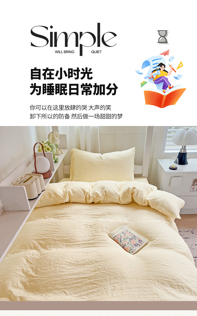 商品名称:(总)欧妮家纺 2025新款纯色水洗棉四件套学生宿舍床单被套三件套床上用品-【含买家秀】