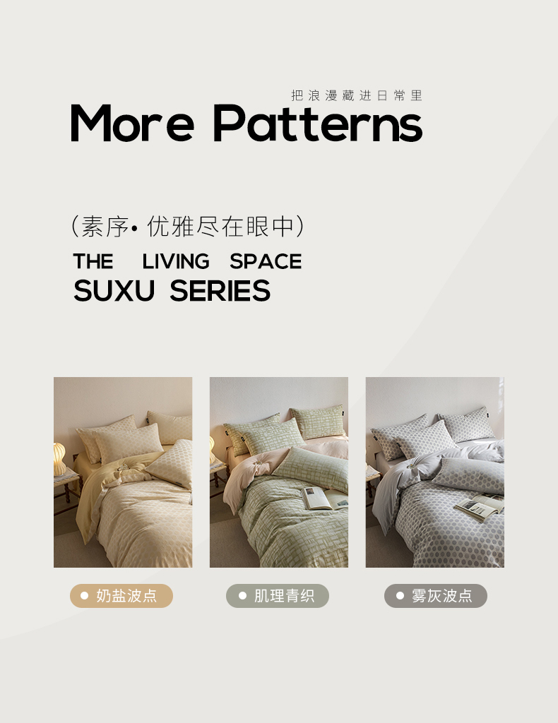 当前位置: 91家纺网 > 商品网购 > 床品套件 > 四件套 > 全棉活性四件套 > 千朵森 2026新款全棉纯棉色织提花肌理四件套-素序 素序-雾灰波点