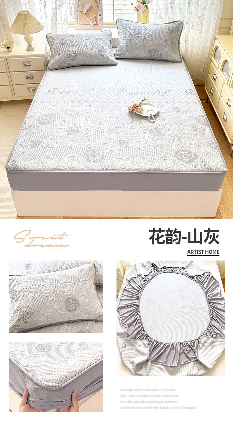 商品名称:优贝 2026新款A类凉感豆豆席三件套床笠软席子 花韵-山灰