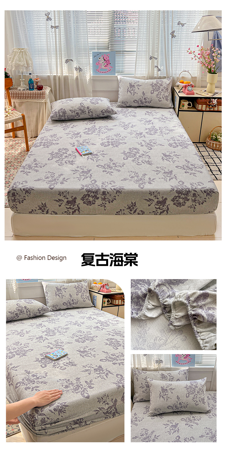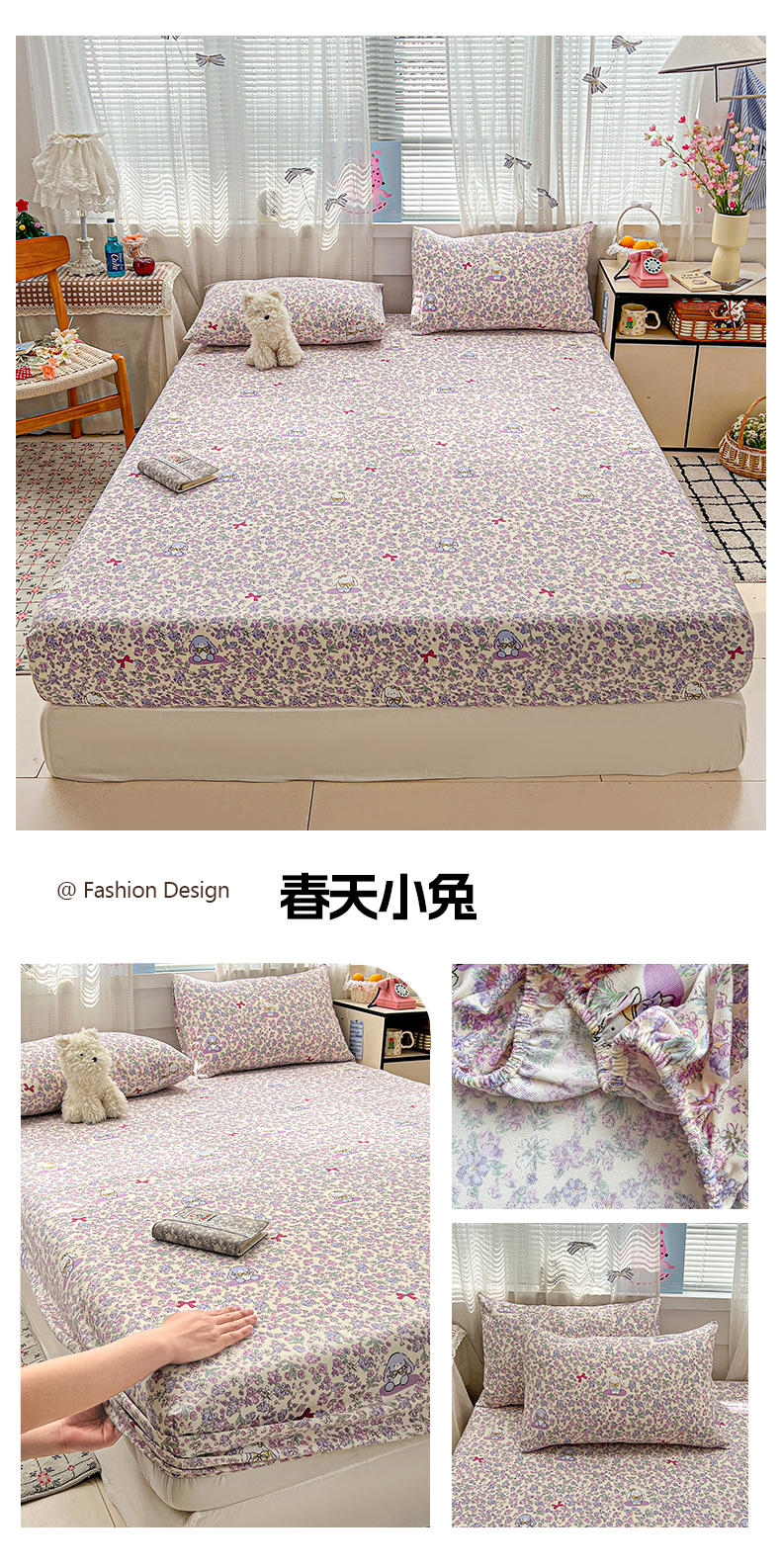 (总)栩裕纺织 2026新款仿棉水洗棉四件套,花漾格调-嫩粉,花漾格调-卡其,花漾格调-浅绿,花漾格调-浅紫,花漾格调-雾蓝