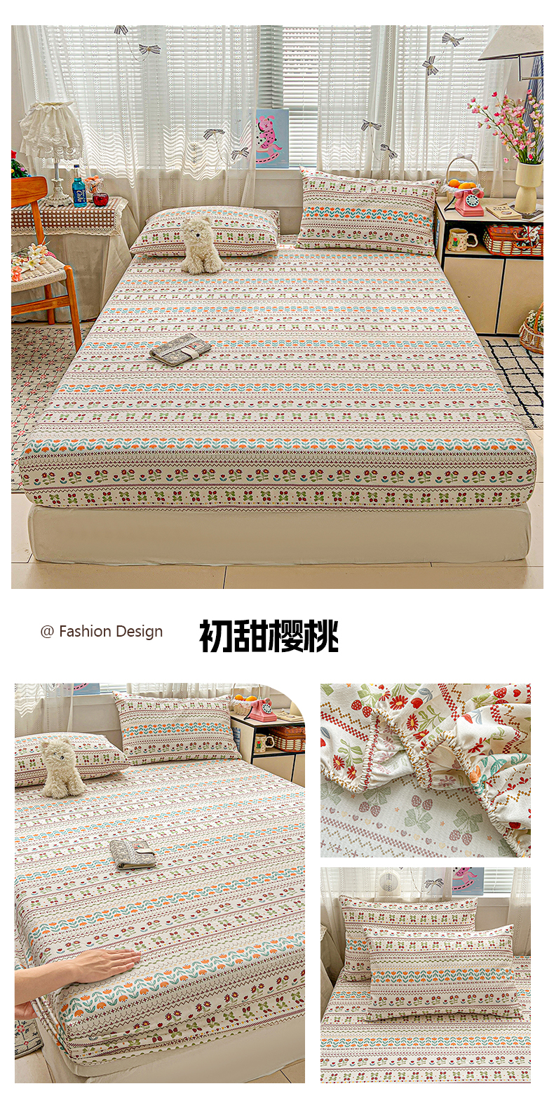 (总)栩裕纺织 2026新款全棉双层纱床盖三件套四件套,可可甜心粉,梦寐花都,抹茶小团子-咖,茉莉清风-粉,木映-绿,暮冬-紫,甜音少女-桔,樱桃奶盖-粉