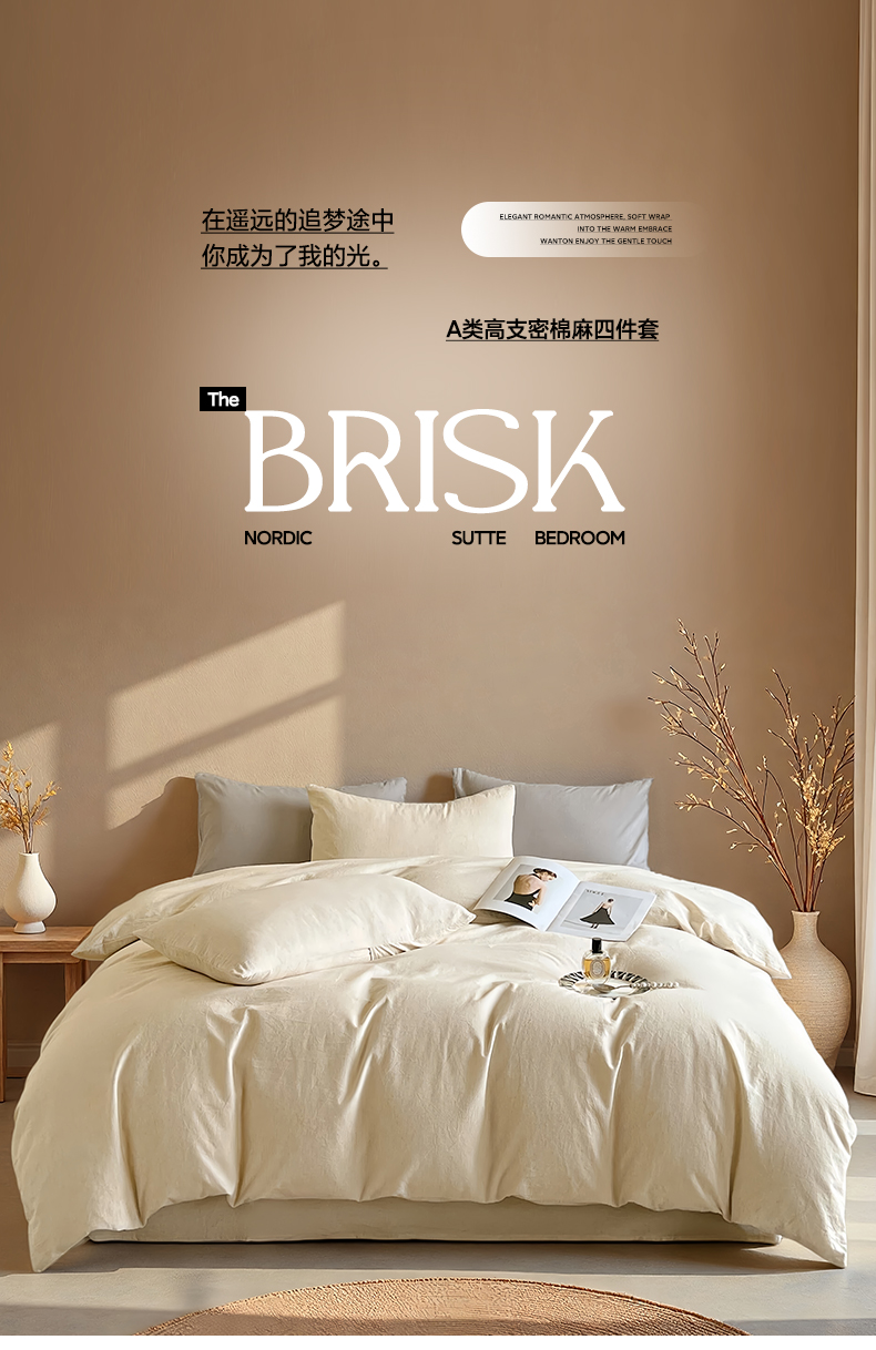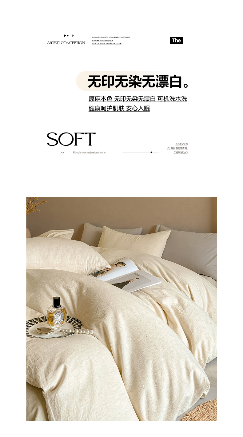 当前位置: 91家纺网 > 商品网购 > 床品套件 > 四件套 > 其它四件套 > (总)树下 2026新款A类高支高密棉麻四件套-素麻