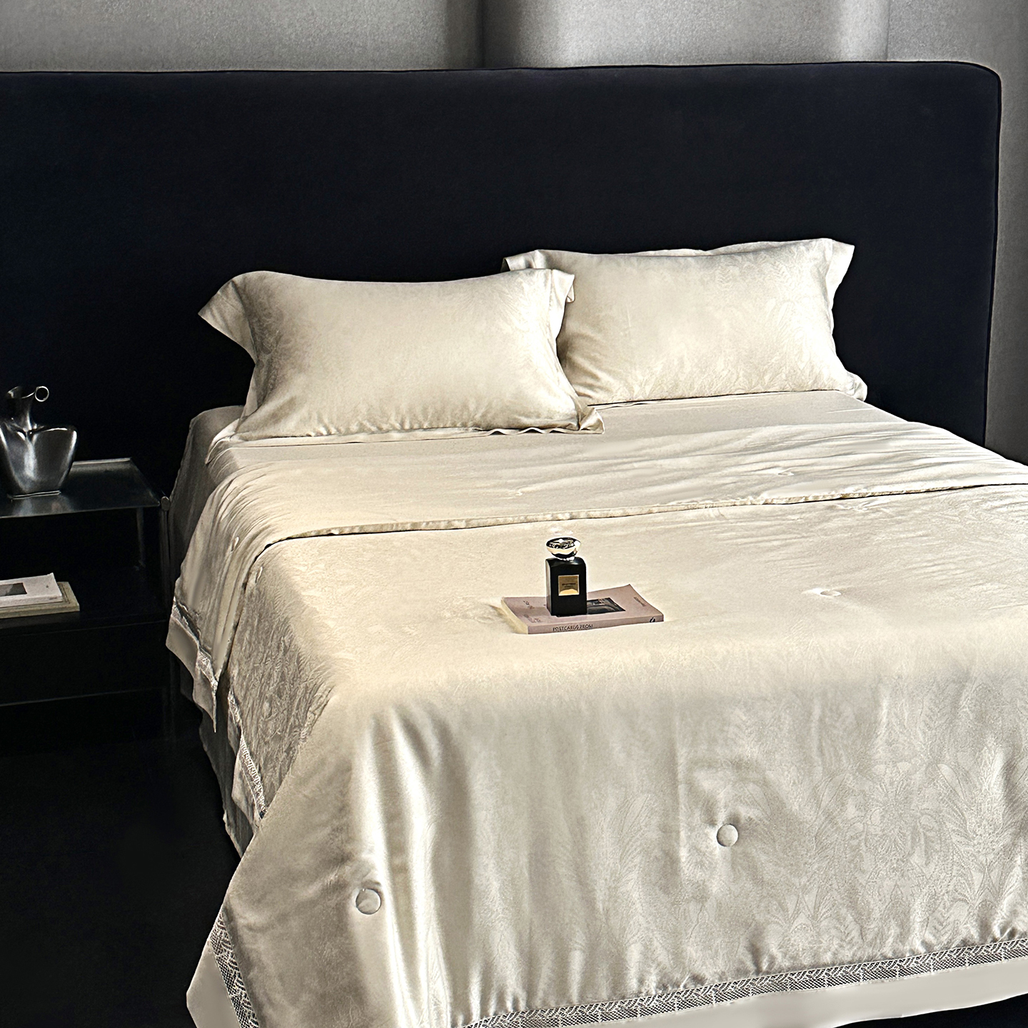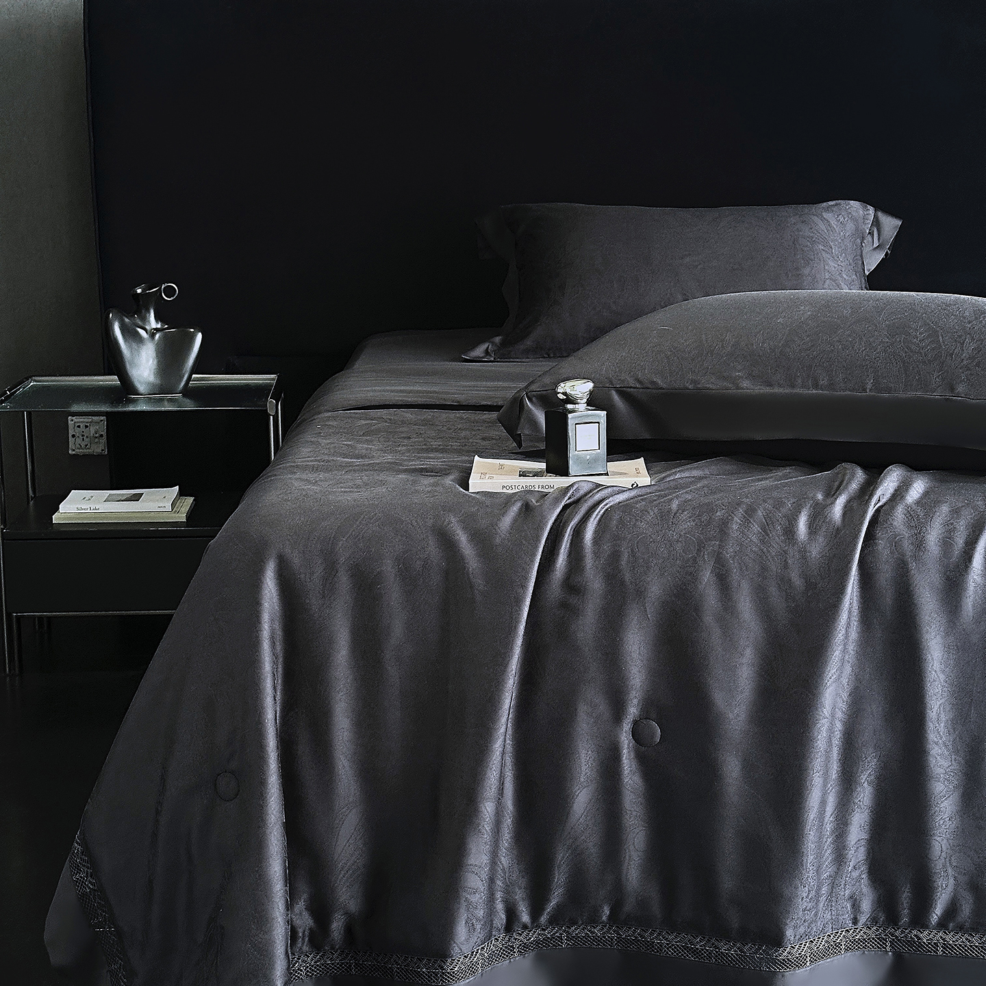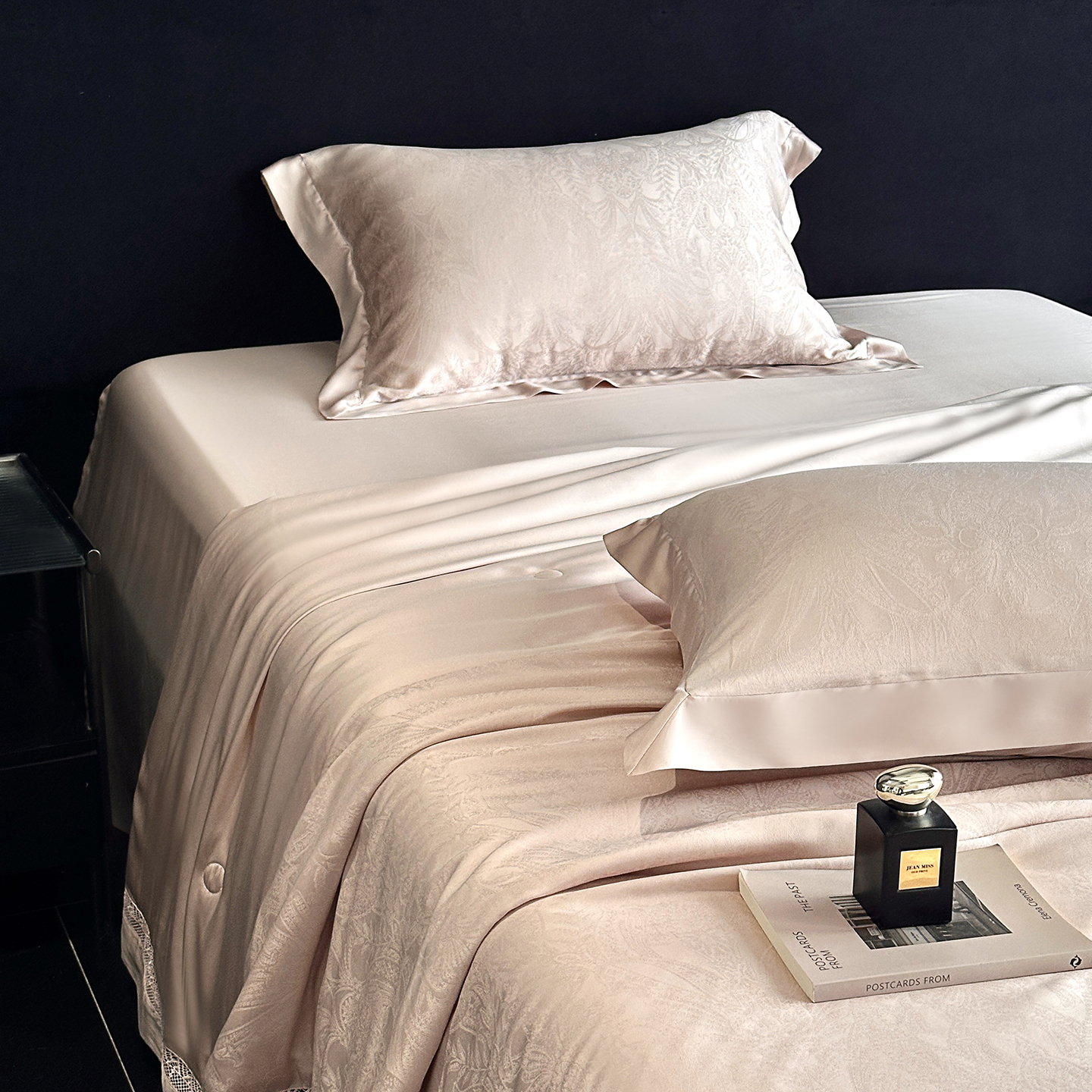 (总)南通朵美纺织品有限公司 2026新款100支天丝镂空提花斐庭系列夏被四件套,斐庭(粉玉),斐庭(黑灰),斐庭(米白),斐庭(浅灰)