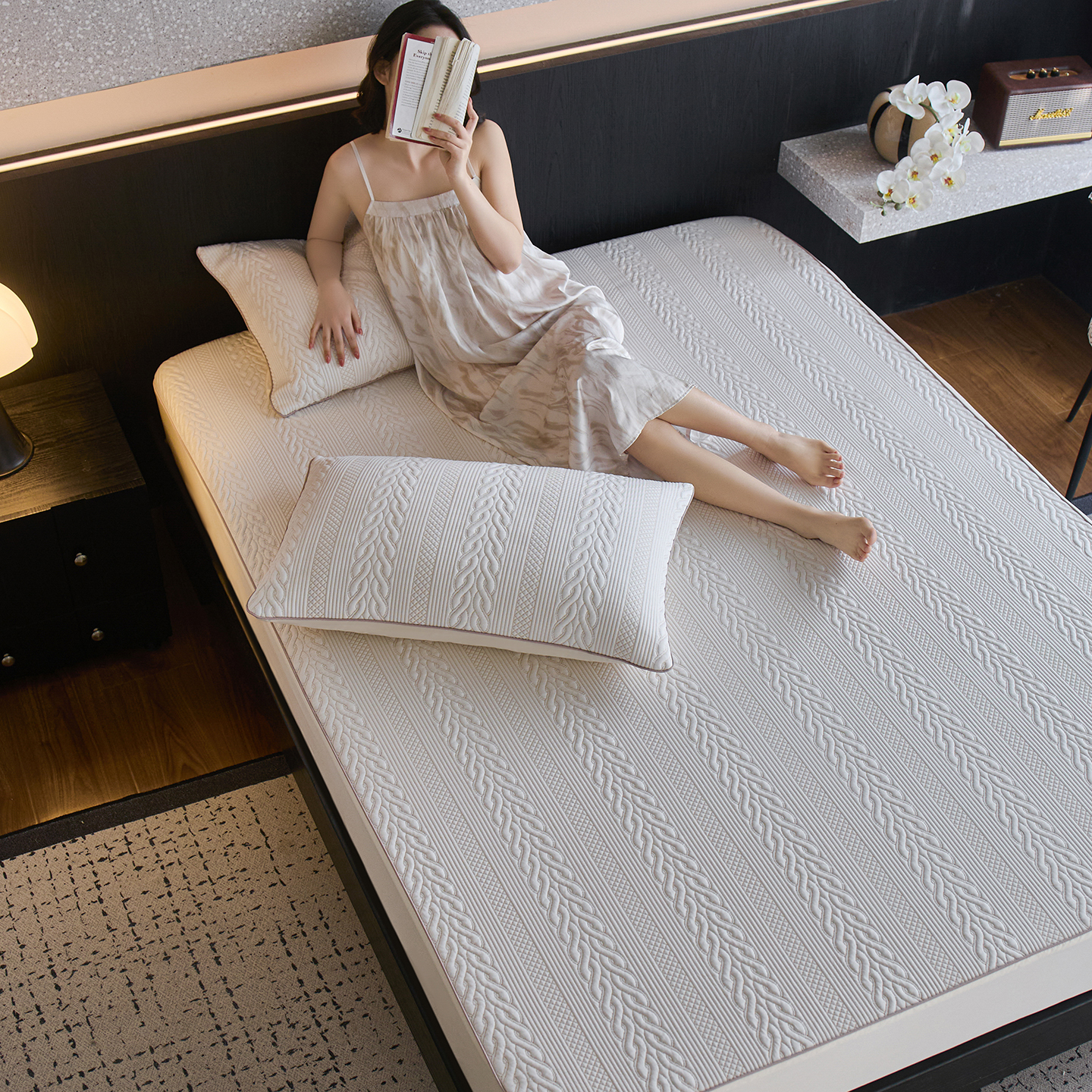 (总)安莱生活 2026新款A类“冰糕”高分子PE550D床笠款(含银丝款)三件套凉席-第一批,菱格,缦纱,斜屿,斜屿-灰,云缦,组合图仅供展示不可下单