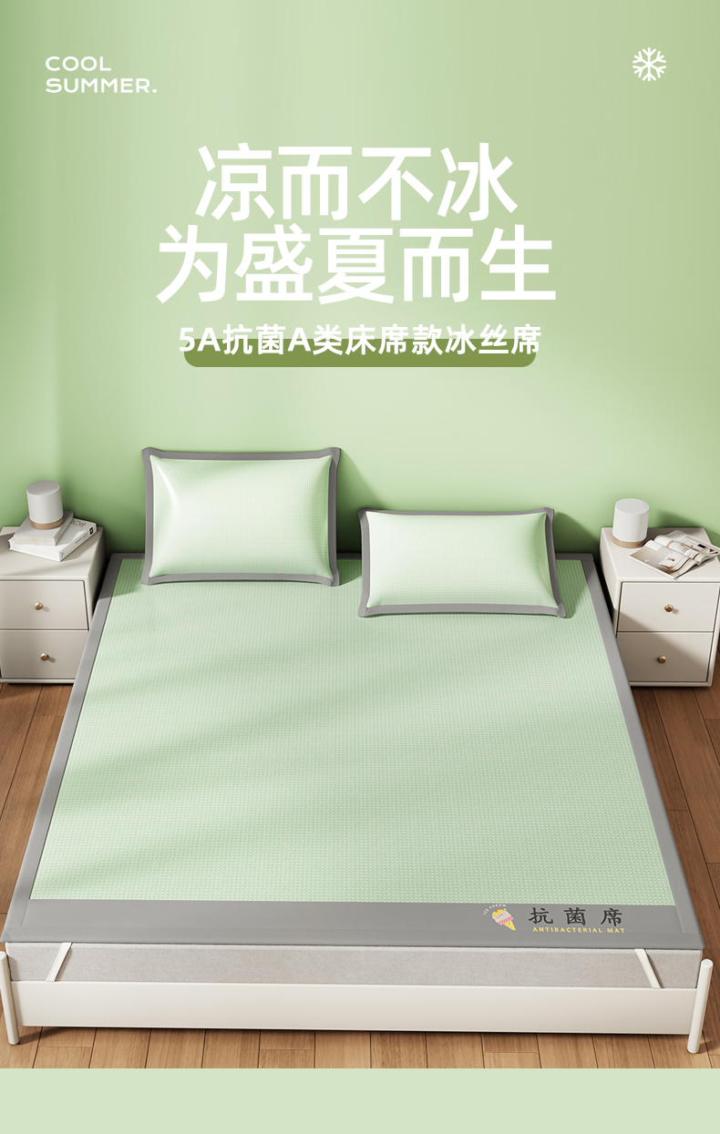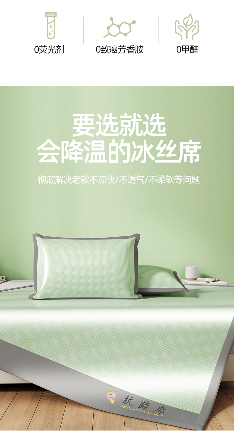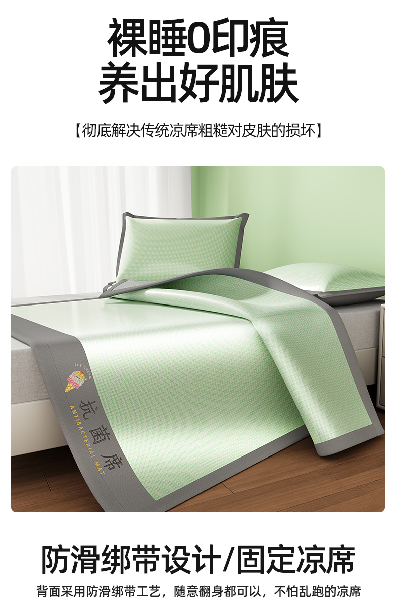 商品名称:色鬼布艺高端家居主号 2026新款抗菌冰激凌色织提花床单款床席冰丝席席子凉席 冰淇淋-清新绿