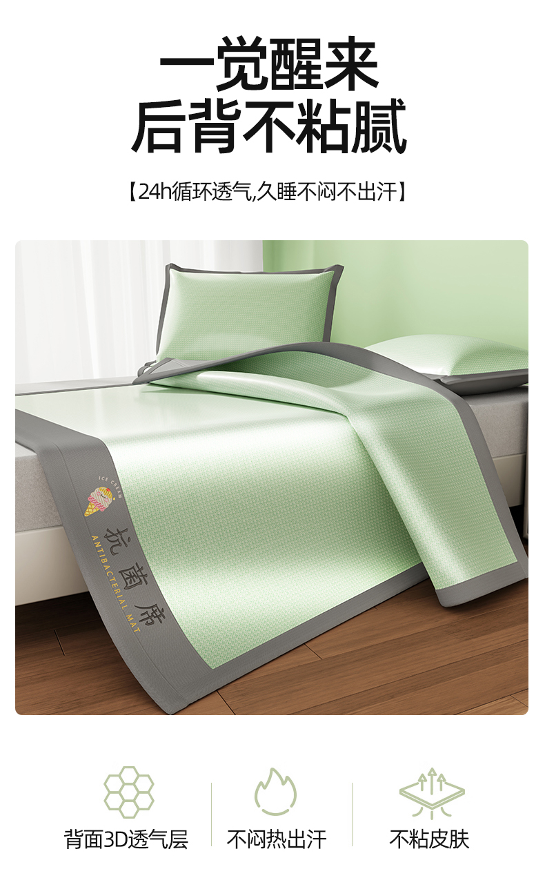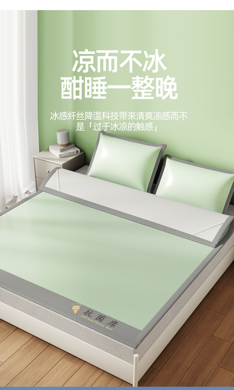 色鬼布艺高端家居主号 2026新款抗菌冰激凌色织提花床单款床席冰丝席席子凉席 冰淇淋-清新绿