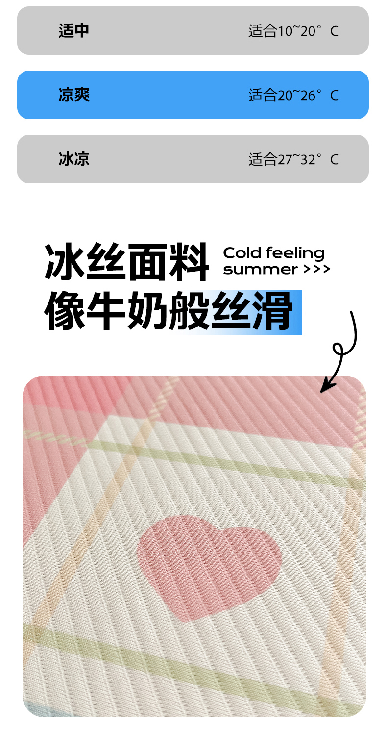 商品名称:女子家纺 2026新款大斜纹复合冰丝凉席-床笠款 爱心气泡粉-床笠款