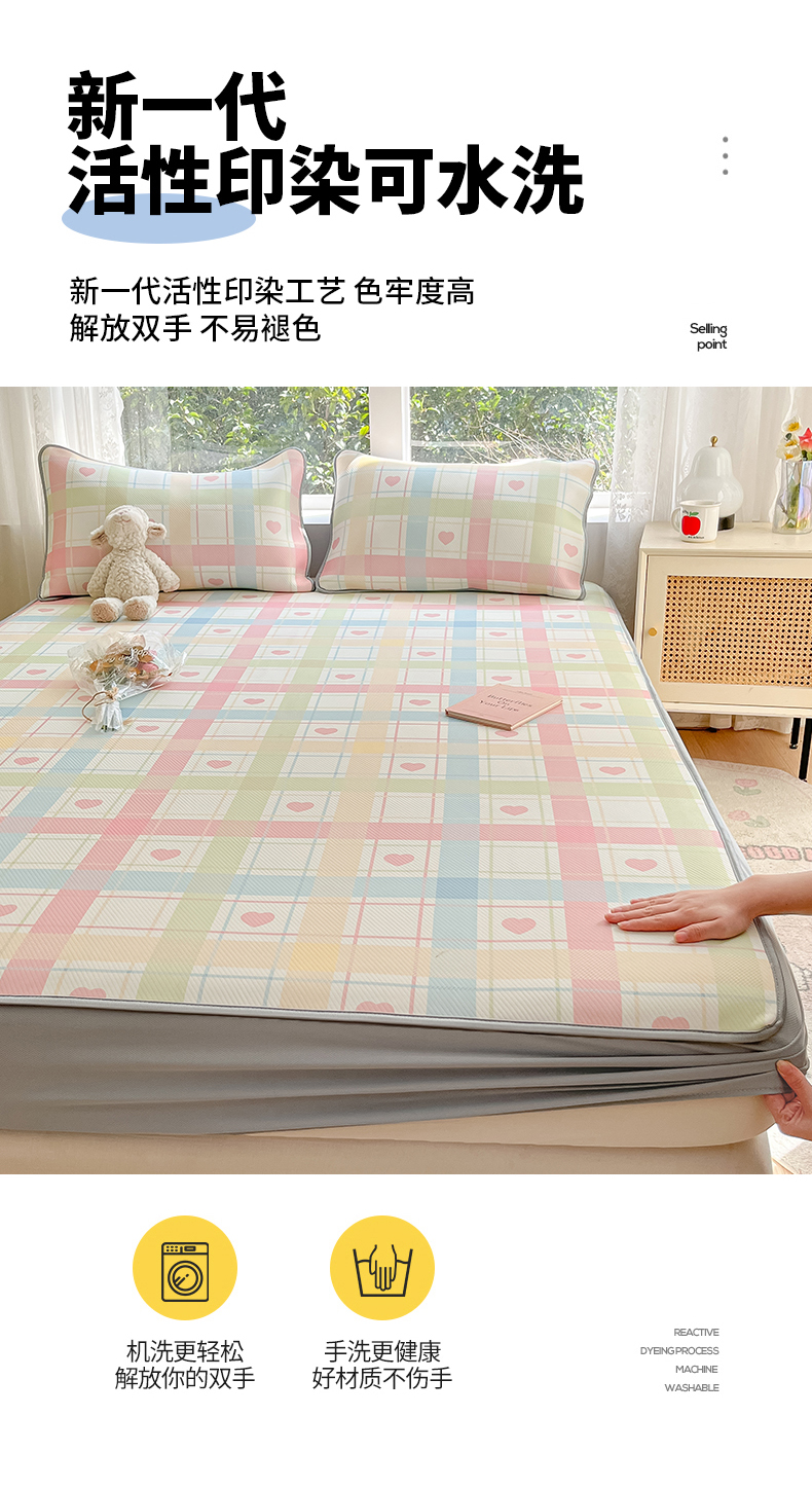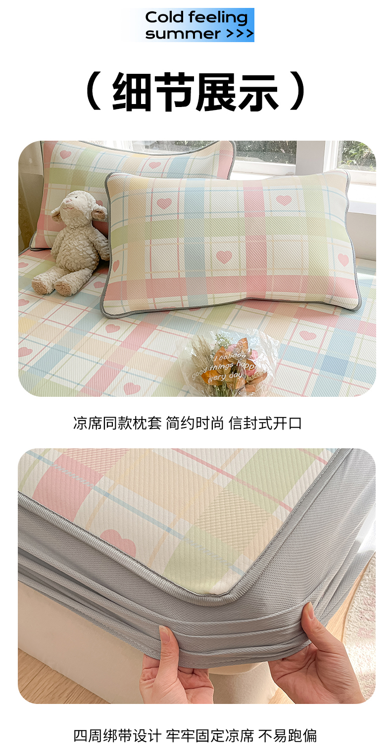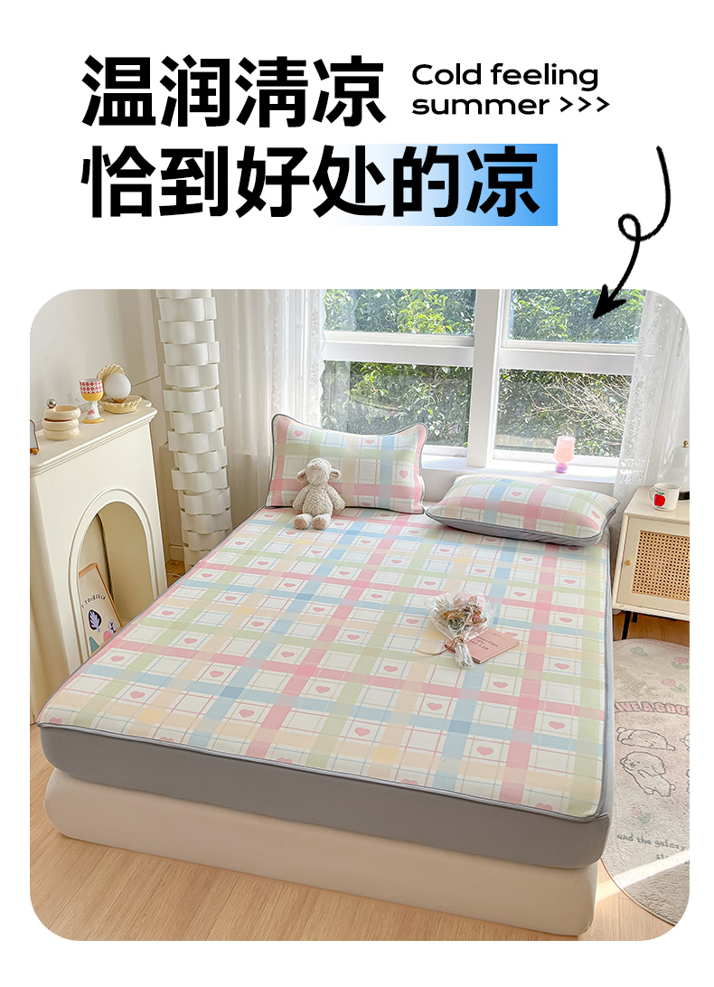 (总)女子家纺 2026新款大斜纹复合冰丝凉席-床笠款,爱心气泡粉-床笠款,萌熊印象-床笠款,奶油草莓-床笠款,拈花湾蓝-床笠款,七彩龙-床笠款,奇妙幻想-床笠款,水木年华-床笠款,午后茶花-床笠款,悠悠小元-床笠款,尤克克里粉-床笠款