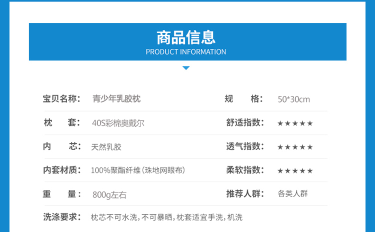 商品名称:(总)伟邦枕芯芯家纺 新款青少年乳胶枕芯50*30cm